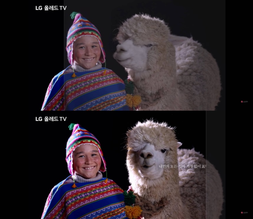 알록달록 옷의 아이, 하얀 양 모두 높은 명암비와 뛰어난 색재현율을 통해 일반 LCD TV와 올레드 TV의 화질 차이를 제대로 확인시켜 주었습니다.