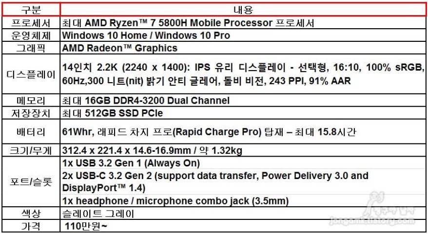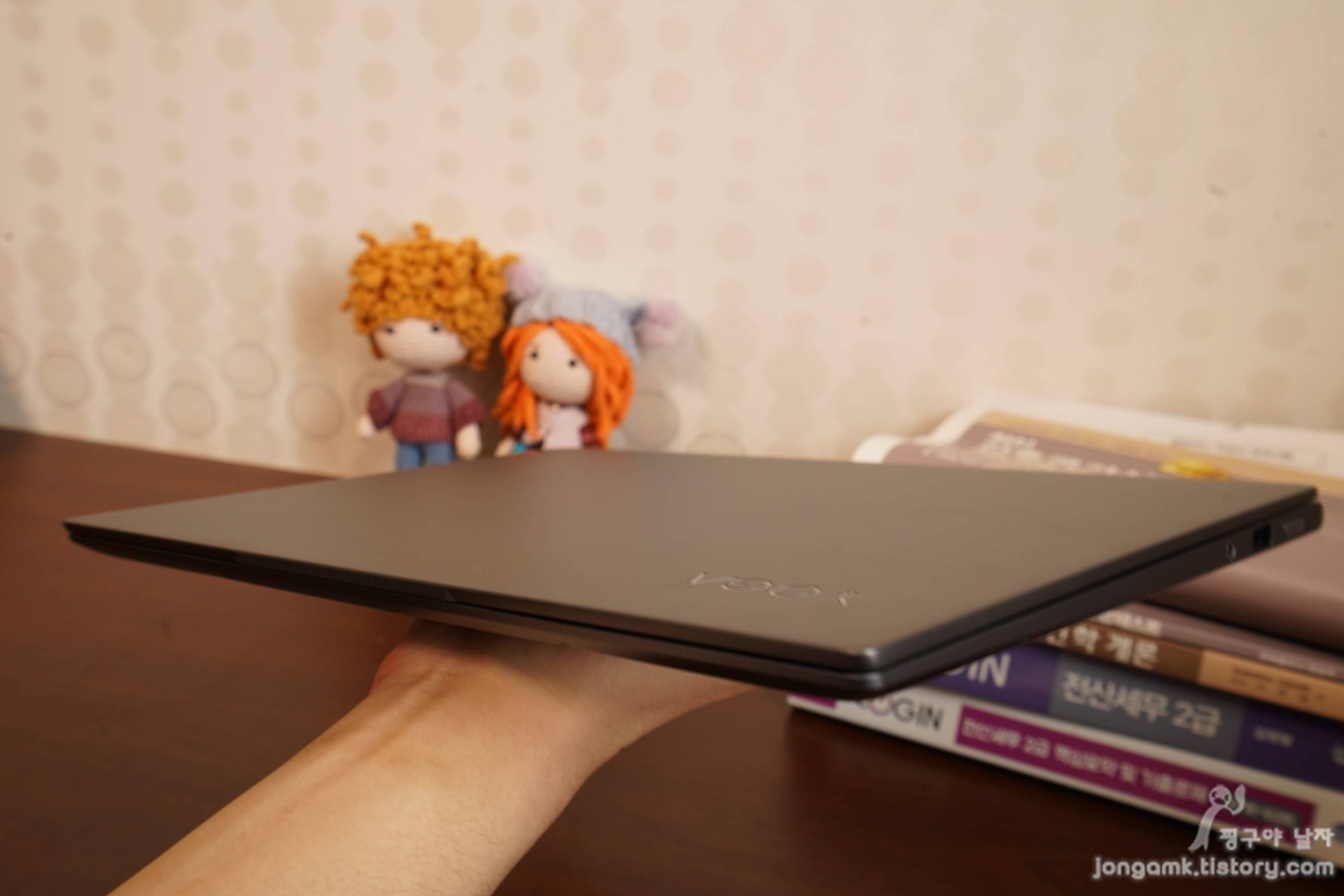 16:10 비율의 14인치 디스플레이를 제공하면서도 1.3kg의 무게로 기대한 것 보다 더 가벼웠습니다. 사진에서 보는 것처럼 디스플레이의 두께도 2.6mm로 날렵해 보입니다.