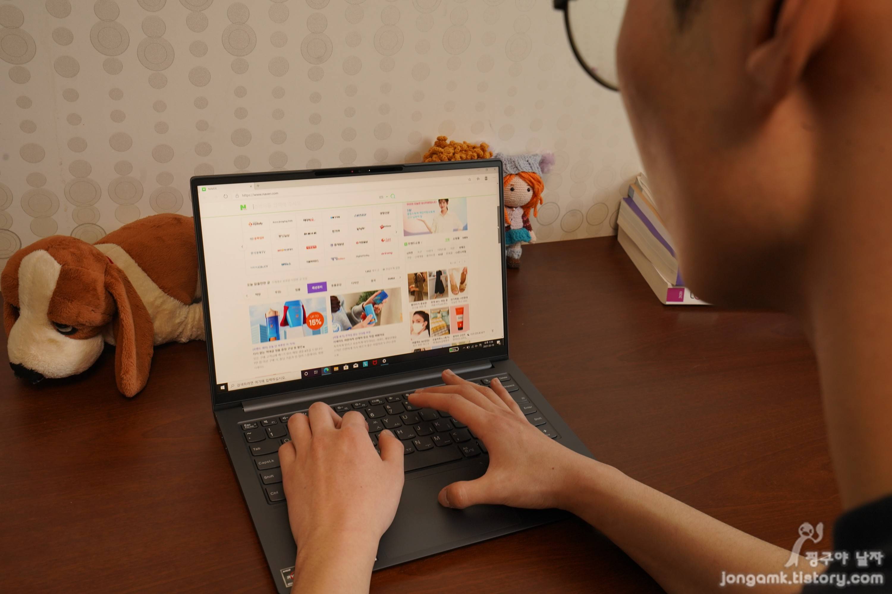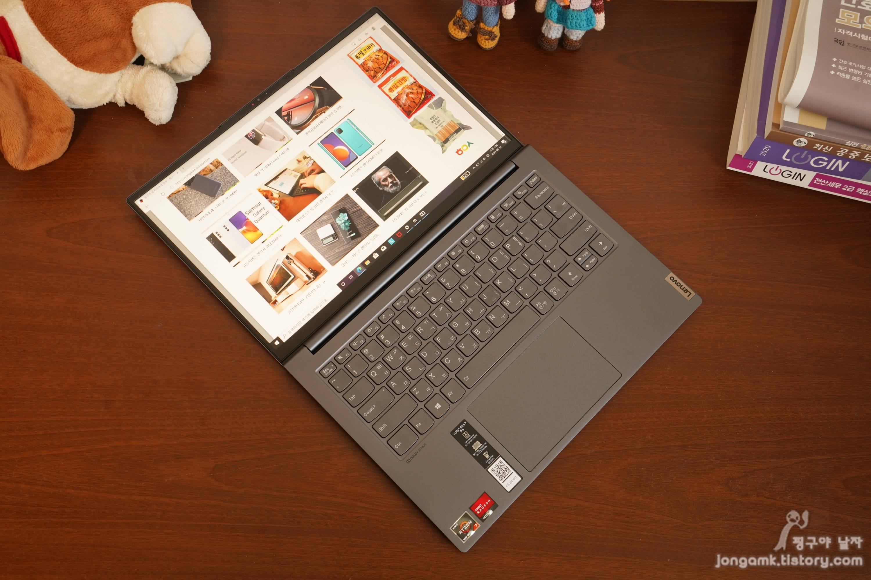 화면이 작지도 크지도 않은 적당한 16:10 비율의 14인치로 베젤이 얇아 전체적인 사이즈는 작지만 화면은 넓어 상대적으로 화면이 커 보이는 거 있죠.