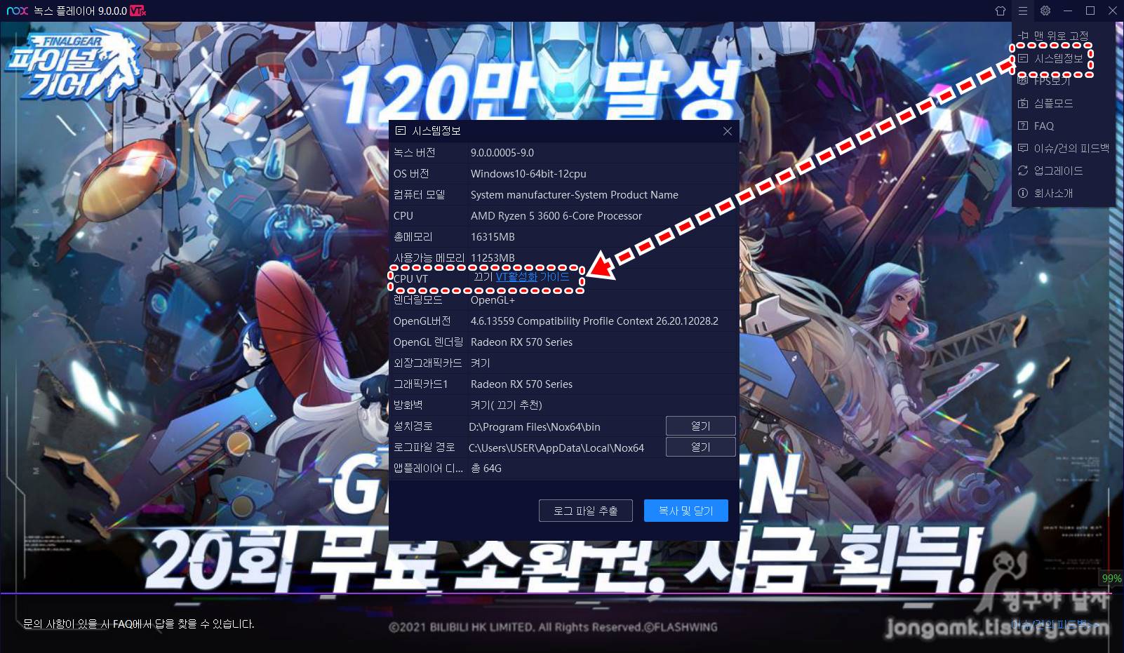 다만 녹스 앱플레이어 안드로이드9을 설치하고 CPU VT 값을 활성화시켜 주어야 합니다. 녹스 앱플레이어 안드로이드9 안드로이드 우측 상단의 메뉴에서 시스템 정보를 찾아 가이드대로 하면 어렵지 않아요.
