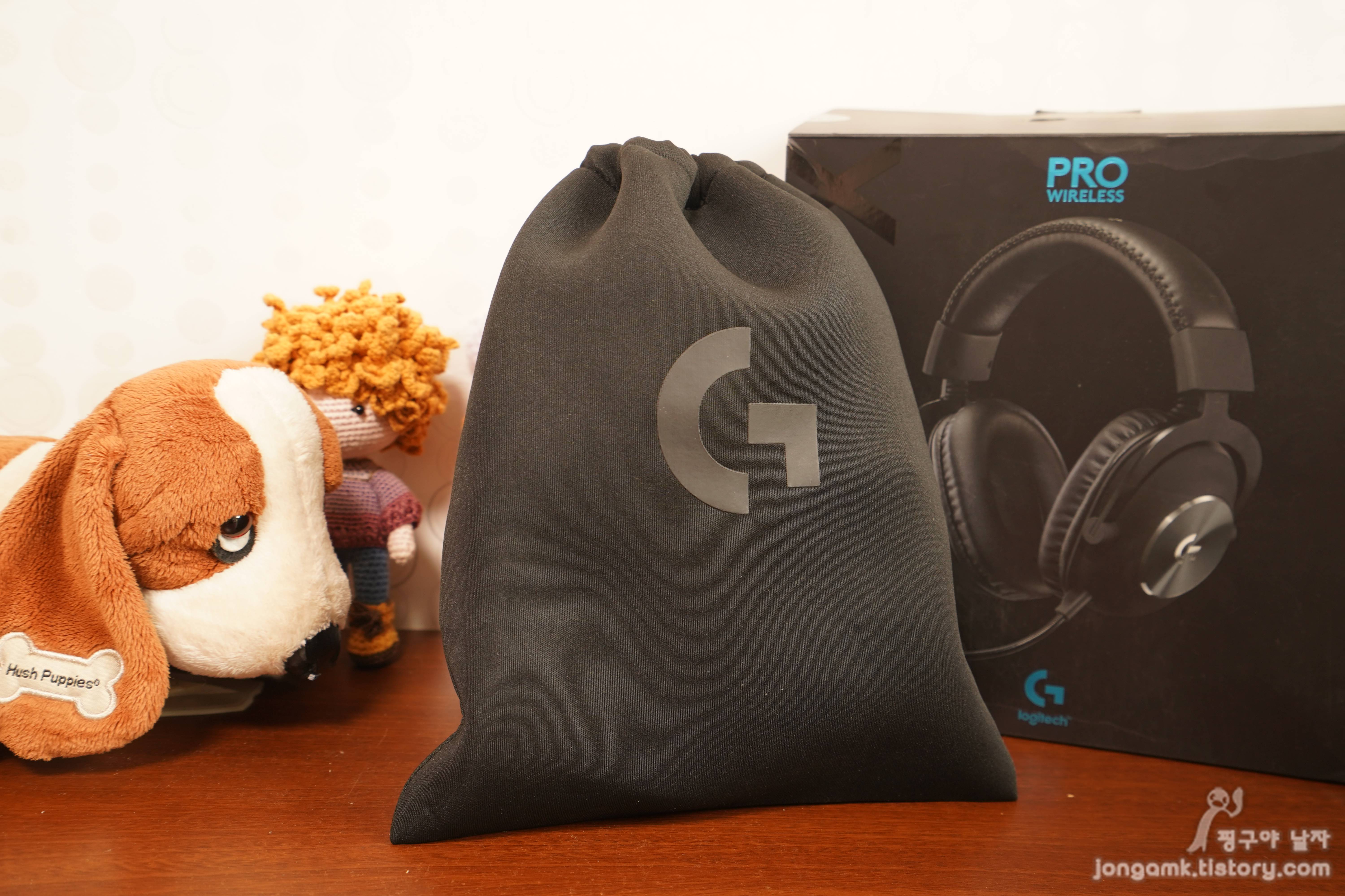 로지텍G PRO X 무선 헤드셋 구성품에는 휴대용 가방이 있어 가방에 넣고 이동을 할 때 유용하게 사용할 수 있어 편합니다. 다만 아쉬운 것은 이어패트 암이 고정식이라 가방 속 공간을 좀 더 사용한다는 부분입니다.