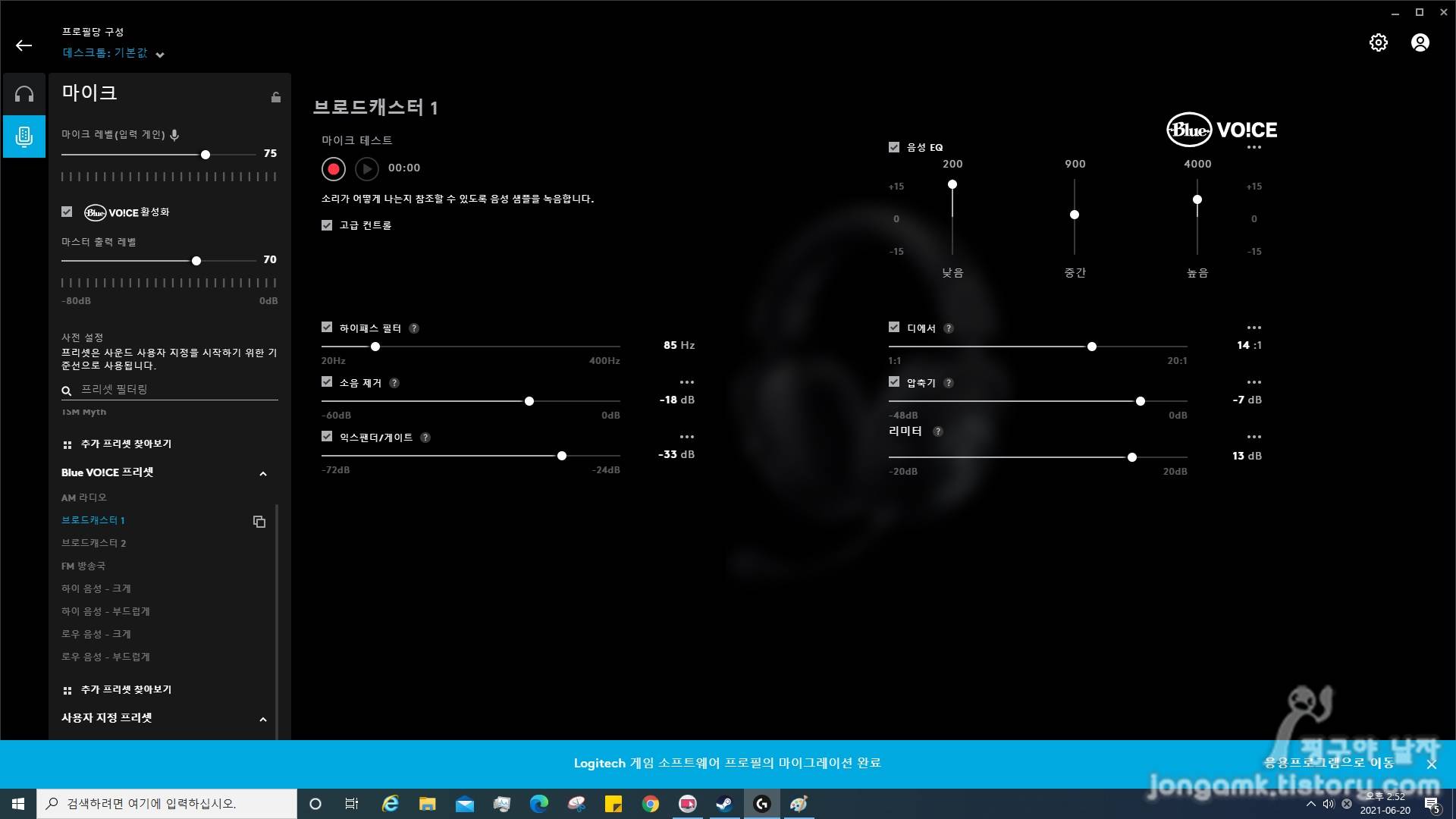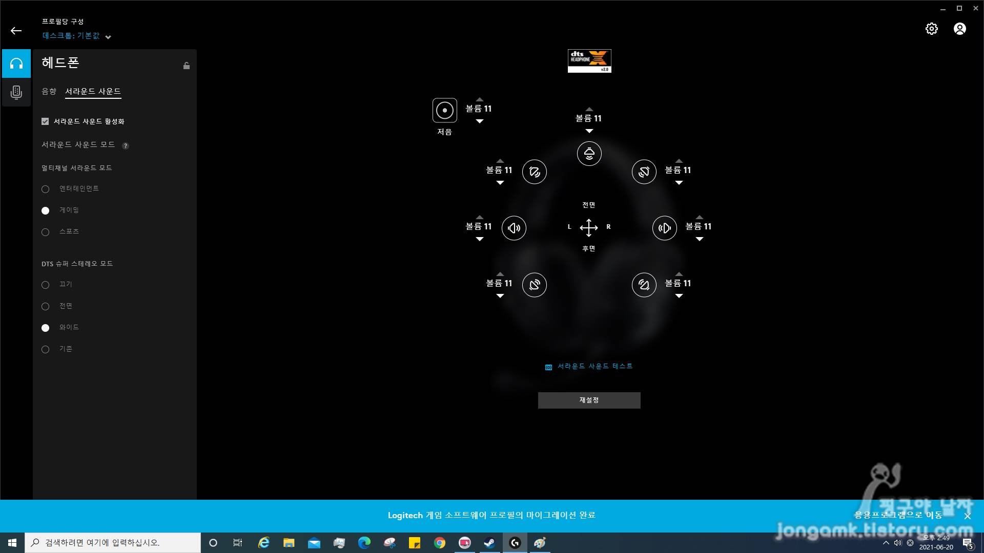 그리고 G HUB 소프트웨어로 헤드폰의 감도를 각 방향별로 커스터마이징하고 마이크는 기본으로 설정했는데 더욱 만족스러웠습니다. 각 방향별로 사운드 볼륨을 조절했으니 당연하겠죠.