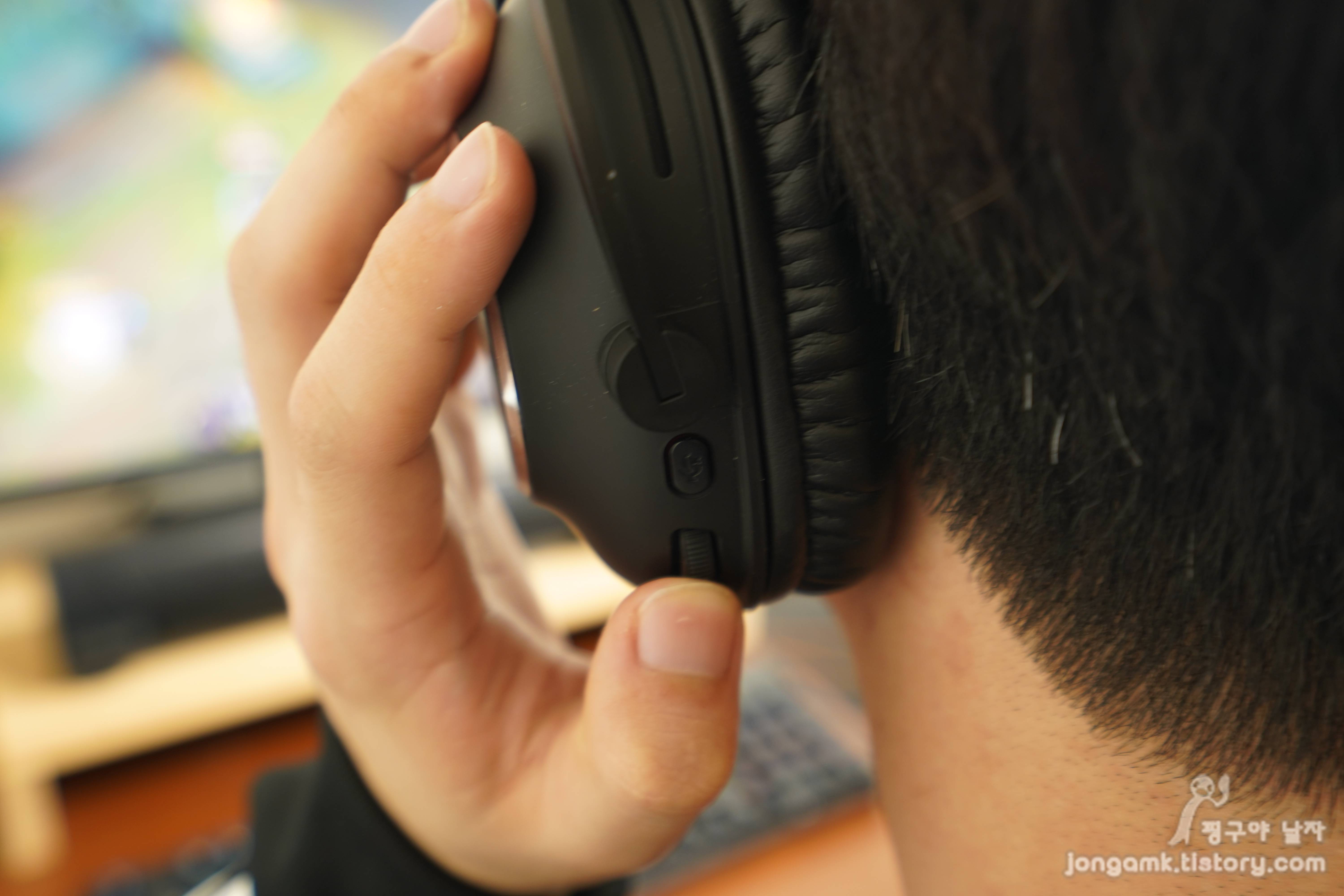 좌측 이어패드 사이드에 볼륨 조절을 비롯한 컨트롤 버튼이 위치해 있어 좌우로 배치된 일반 게이밍 헤드셋과 달리 헷갈리지 않아 처음부터 쉽게 사용할 수 있었습니다.