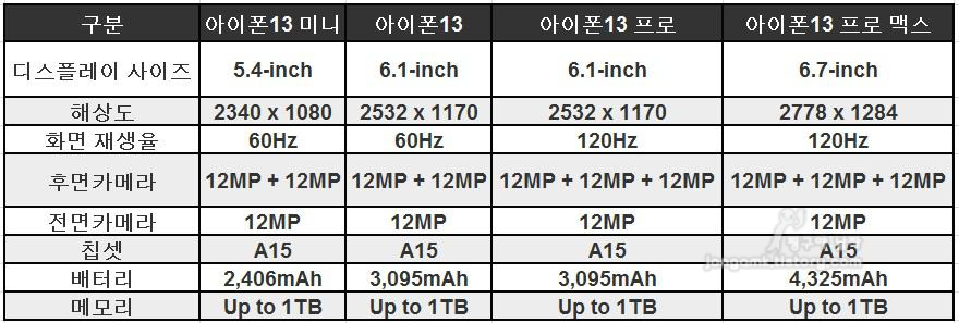 아이폰13 시리즈 스펙 간단 비교