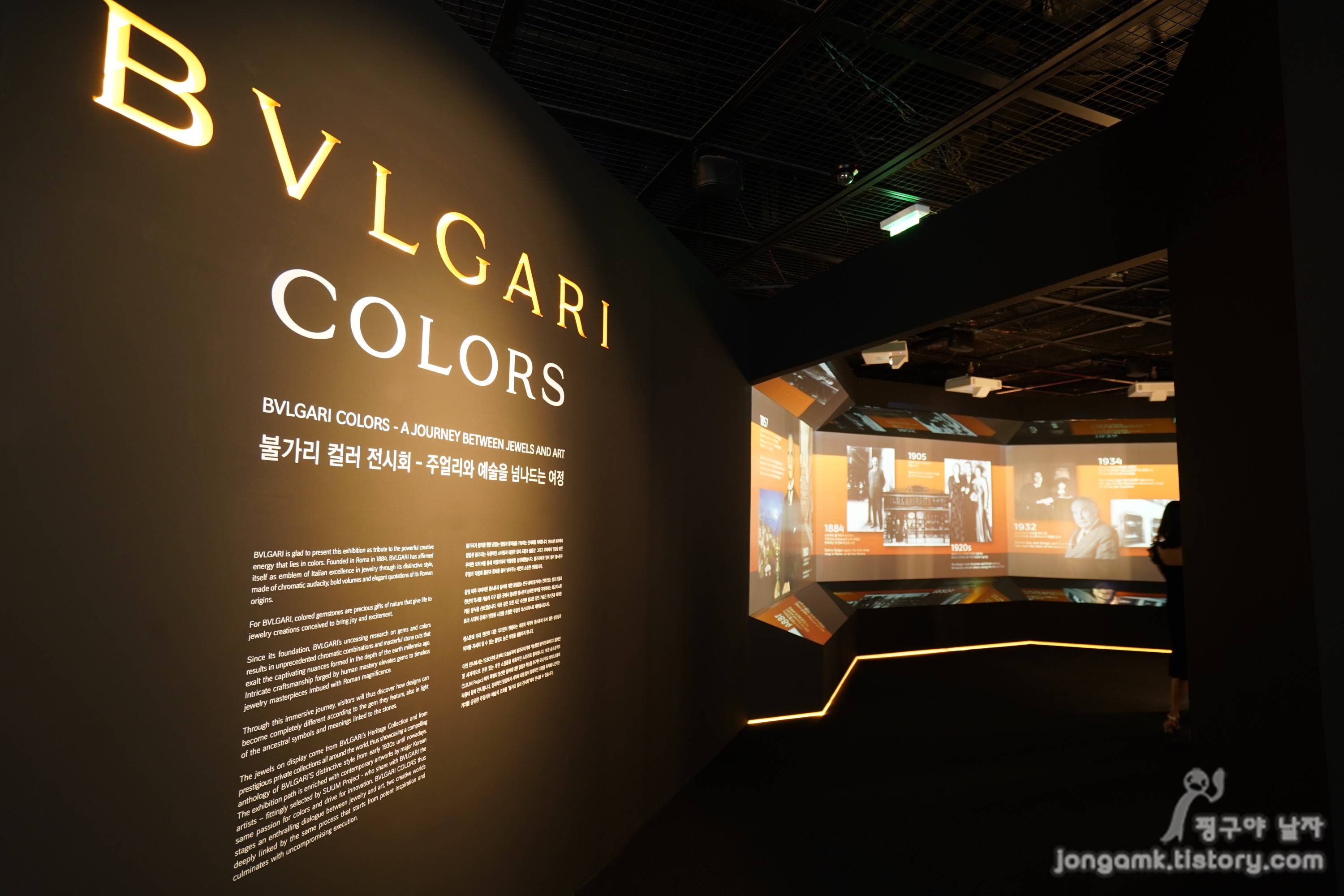 불가리 컬러 전시회 내부는 각종 보석과 작품들을 집중하여 관람할 수 있도록 작품 이외 공간은 조명을 최대한 낮추었습니다. LG 올레드가 표현하는 자연 화질로 불가리의 보석 컬러를 생생하게 재현해 기대 이상의 전시회였습니다.