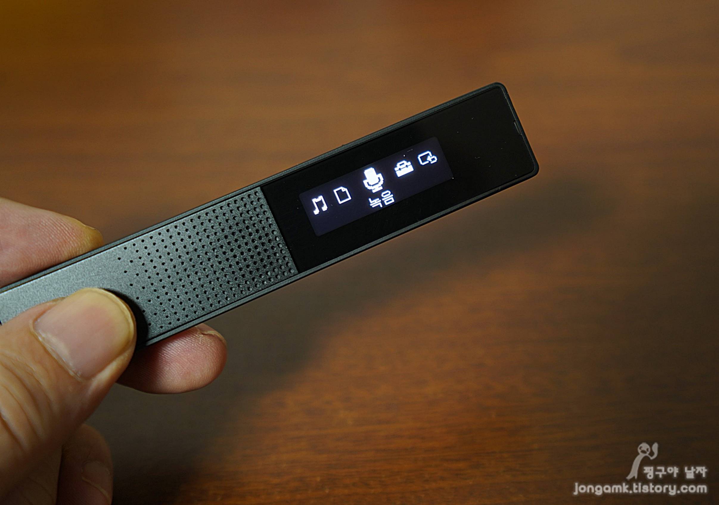 설정을 간단히 마무리하고 나니 올레드 디스플레이에 다양한 메뉴가 보였습니다. 작고 귀여워 당장 녹음을 하고 성능을 확인 해 보고 싶은 거 있죠.