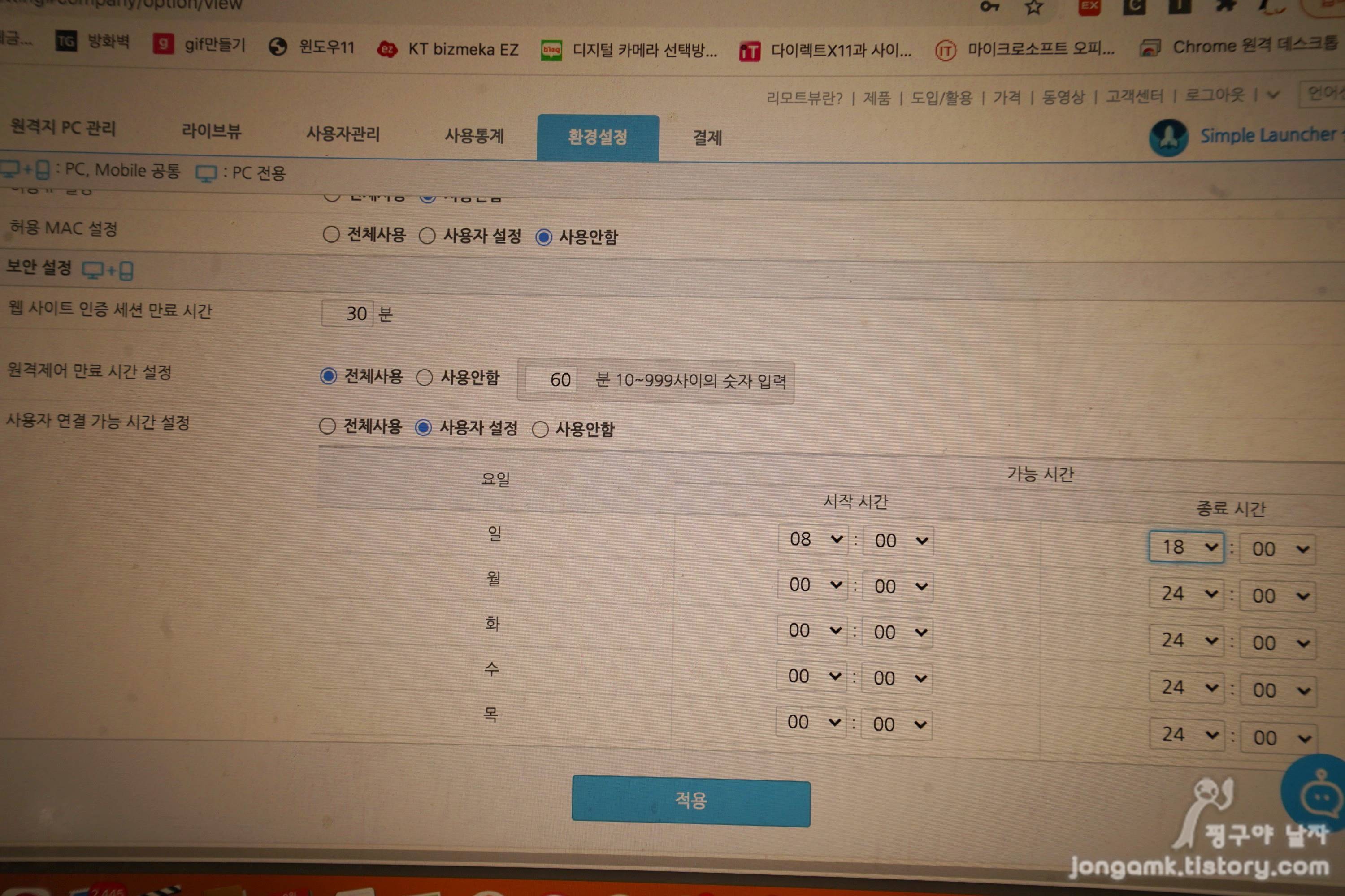 리모트뷰는 일정한 요일이나 시간대별로 접근할 수 있도록 설정할 수 있어 관리나 보안에 좀 더 강력한 원격제어프로그램이라고 할 수 있겠습니다.