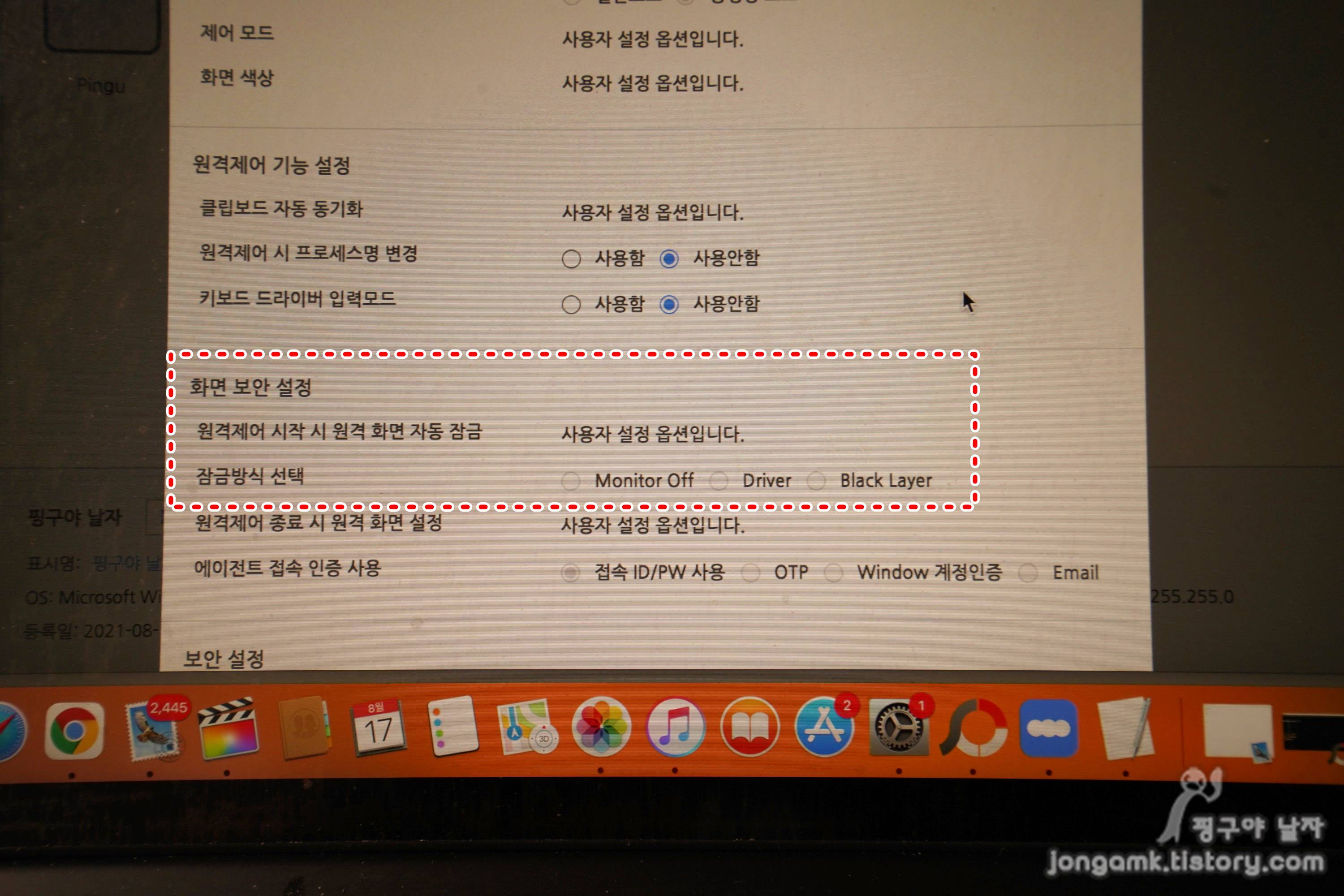 내 PC에 있는 중요한 정보를 외부에서 컨트롤하는 동안에 화면이 노출되면 부담스러운 경우도 있을 수 있기 때문에 원격제어 중에는 화면이 보이지 않게 된다던지 하는 다양한 보안기술도 필요하겠죠.