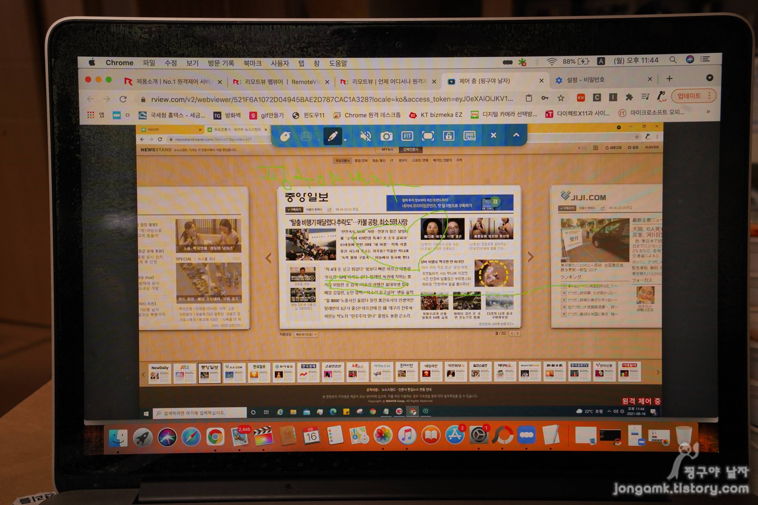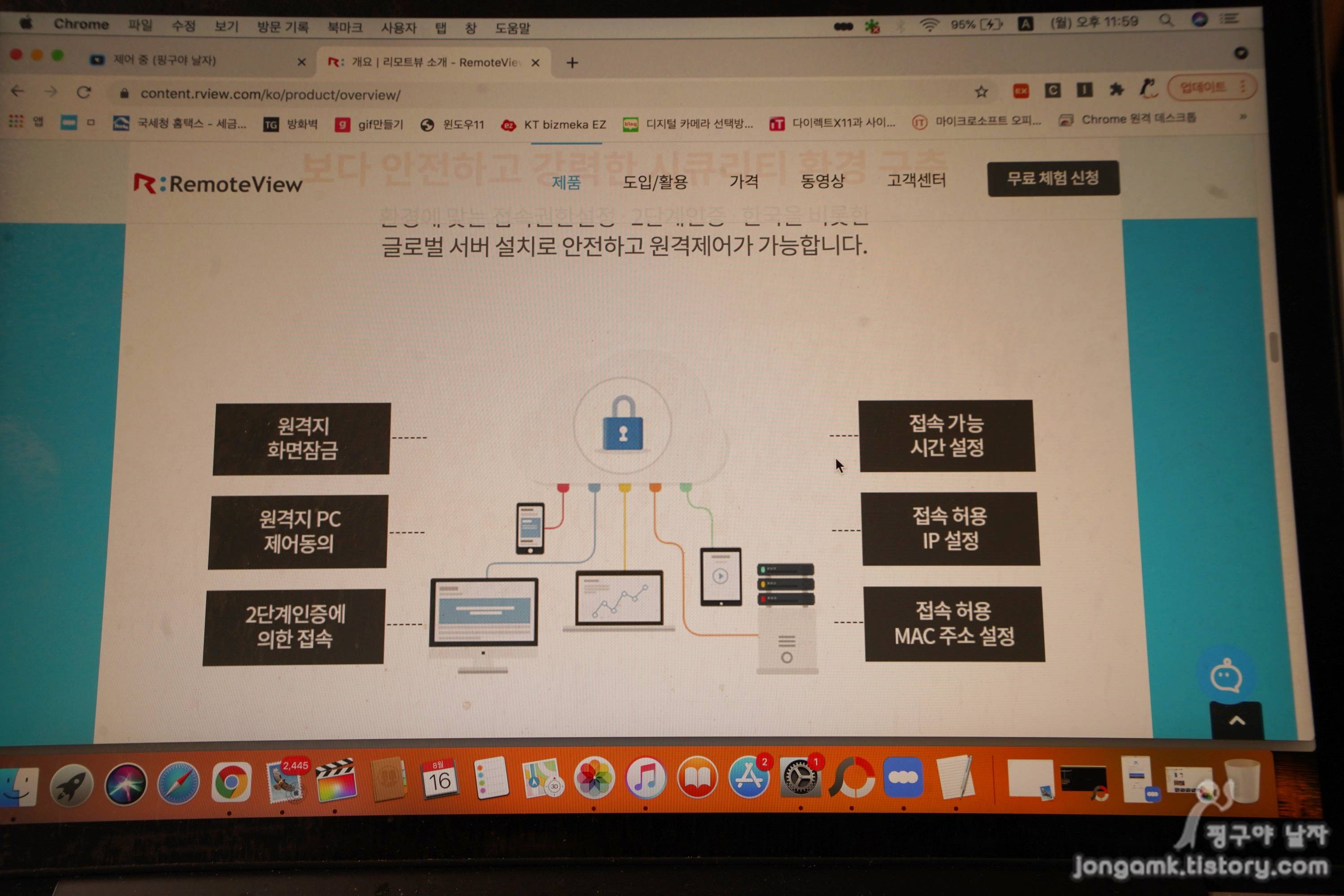 뿐만 아니라 윈도우즈OS를 사용하는 PC를 맥북에서 크롬 브라우저를 이용해도 원격제어를 할 수 있기 때문에 유연한 접근성을 제공하는 원격제어 프로그램을 찾는다면 리모트뷰를 추천을 하고 싶습니다.