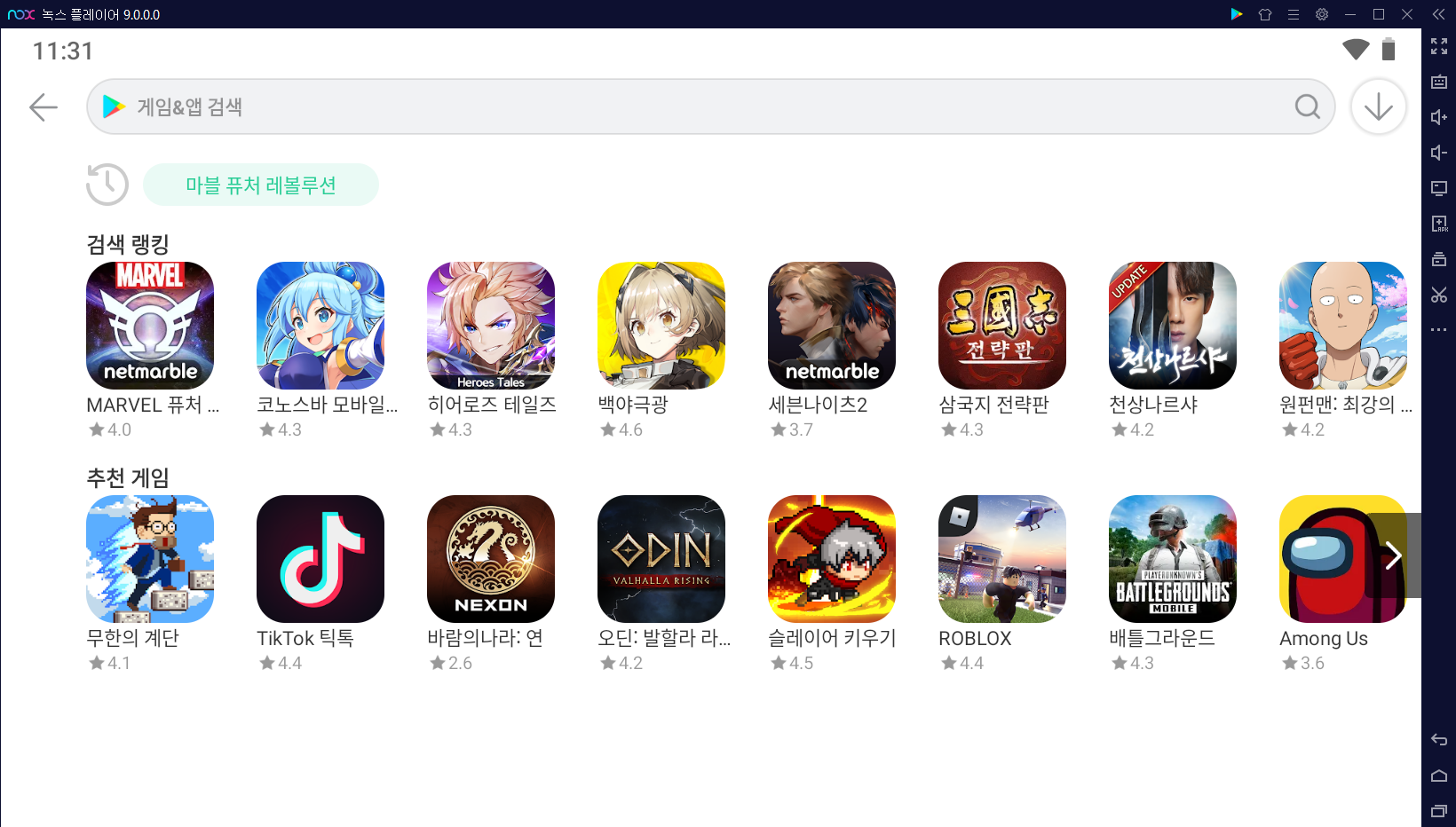녹스앱플레이어는 종합 모바일 게임 플랫폼으로 마블 퓨처 레볼루션뿐만이 아닌 모든 게임 플레이가 가능하다는 점 기억하면 좋겠죠. 더구나 안드로이드9 버전을 정식 출시하여 더욱 안정적인 플레이가 가능해요.