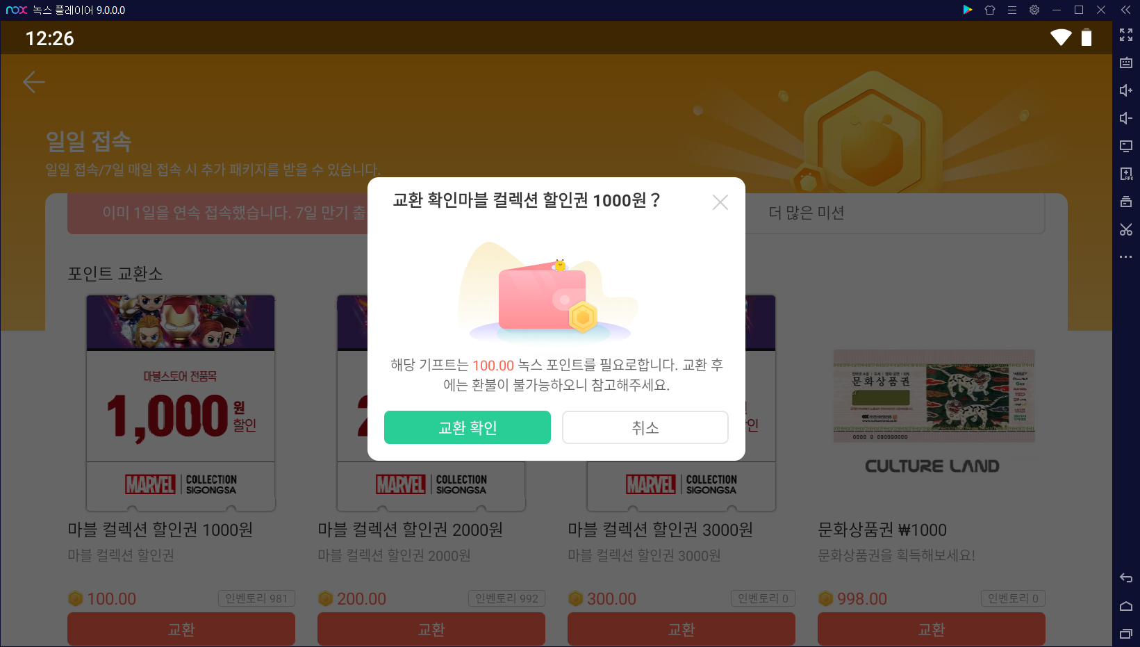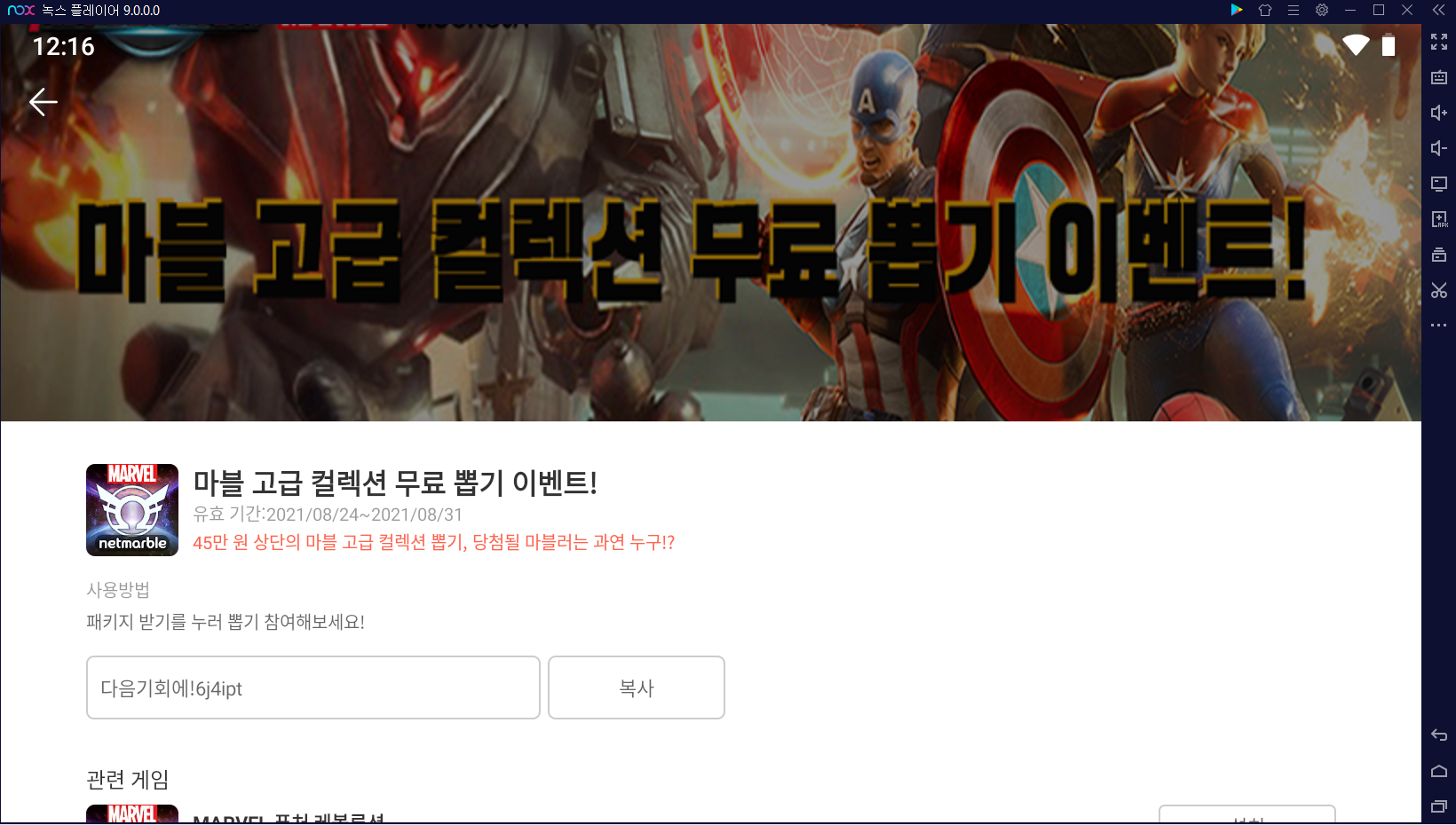 마블 퓨처 레볼루션을 꼭 녹스 앱플레이어를 공략해야 하는 이유가 생겼어요. 마퓨레를 공략하고 구글 기프트 카드 무한 획득할 수 있는 상점을 오픈했기 때문이죠. 특히 마블컬렉션과 같이 특별한 컬렉션 받을 수 있는 기회도 놓칠 수 없구요.