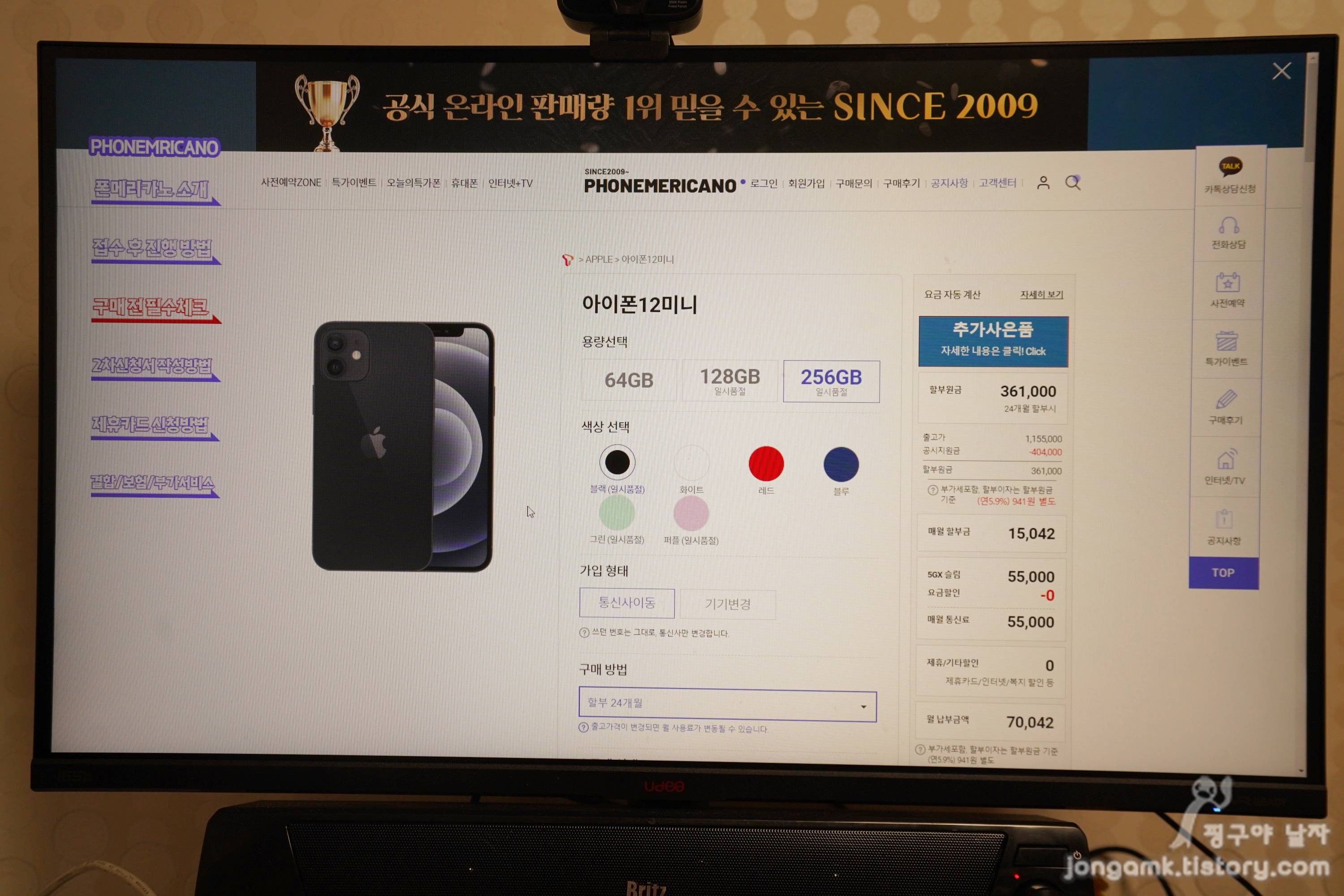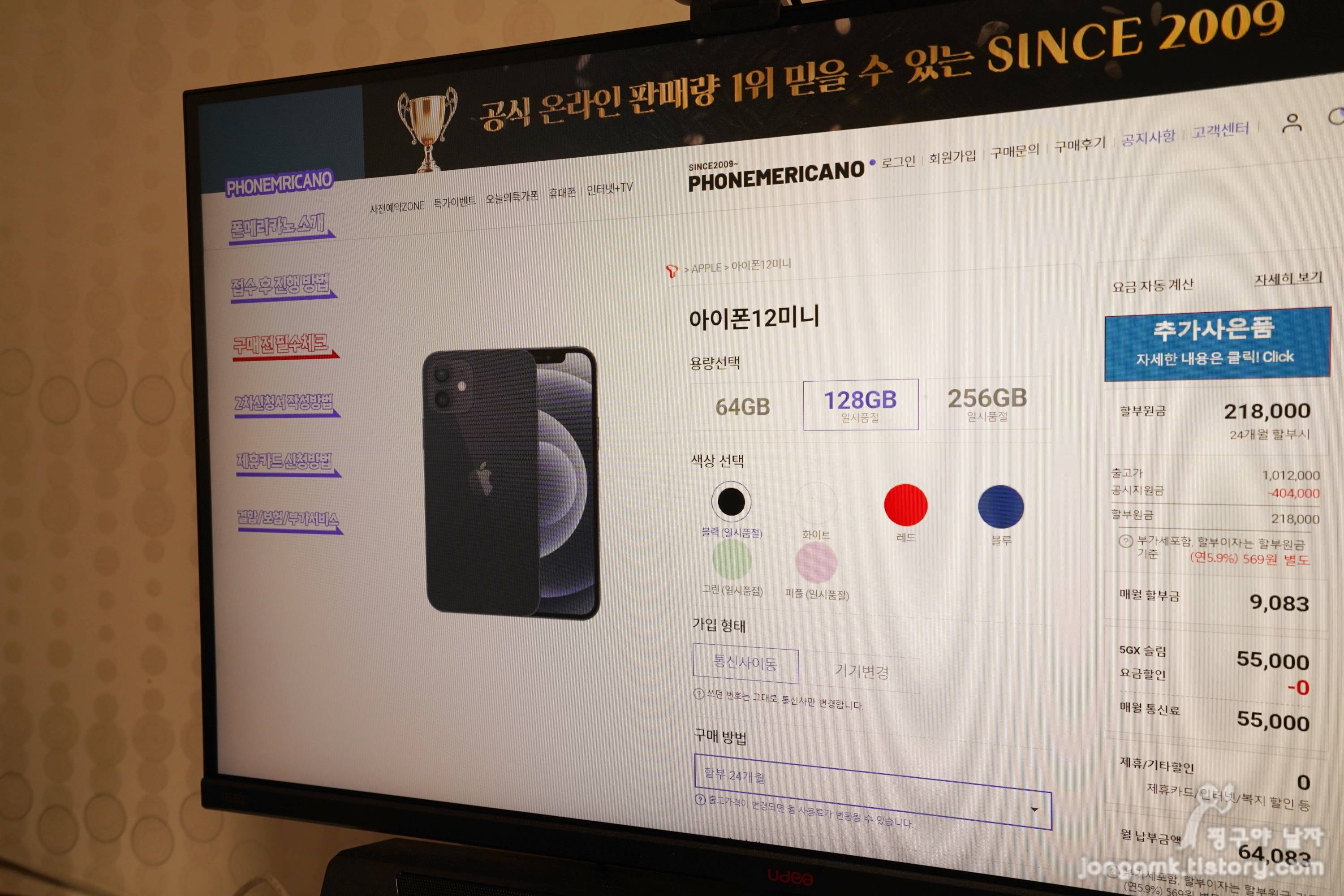 오랫동안 서비스를 지속한 것 이외에도 폰메리카노를 애용하는 것은 특별히 회원가입을 하지 않고 아이폰12 미니 등 구매하고 싶은 스마트폰을 골라 할부원금을 확인한 후 신청하면 되기 때문에 절차가 간단하다는 특징이 있습니다.