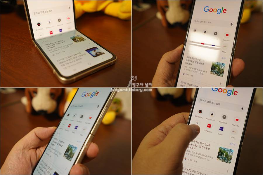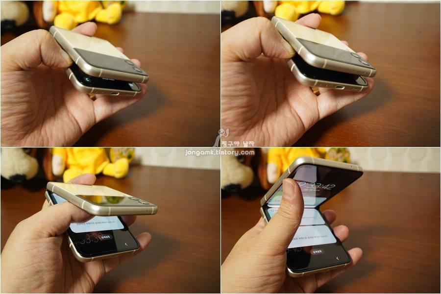 그러나 전작과 비교해 아마 레이어 기술를 적용해 내구성을 강화했지만 한 손으로 갤럭시Z 플립3를 펼치는 손맛을 느낄 수 없었습니다. 물론 힘을 주면 가능할 수도 있었지만 예전 스타텍의 손맛을 생각한다면 실망할 수도 있습니다.