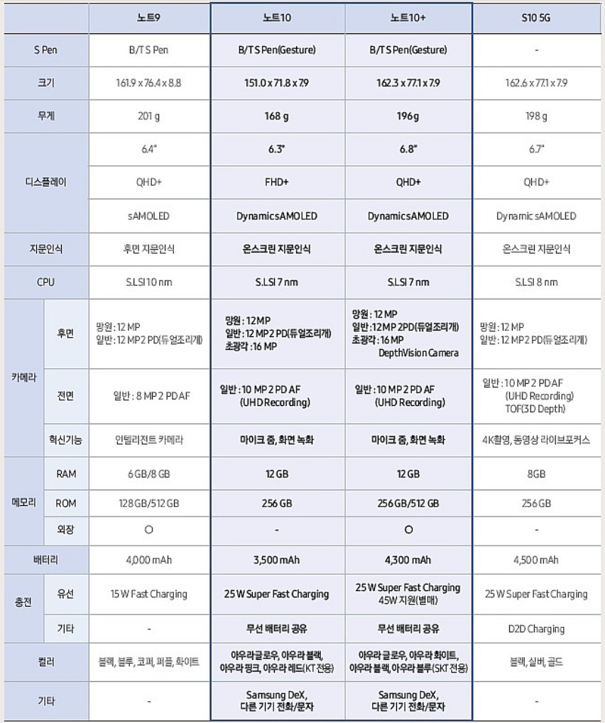 갤럭시노트10 스펙과 특징