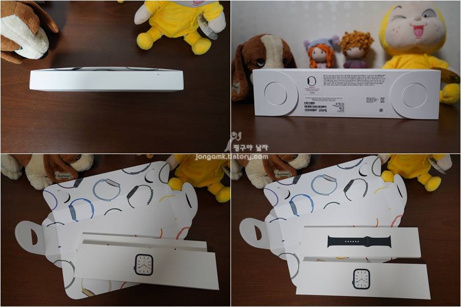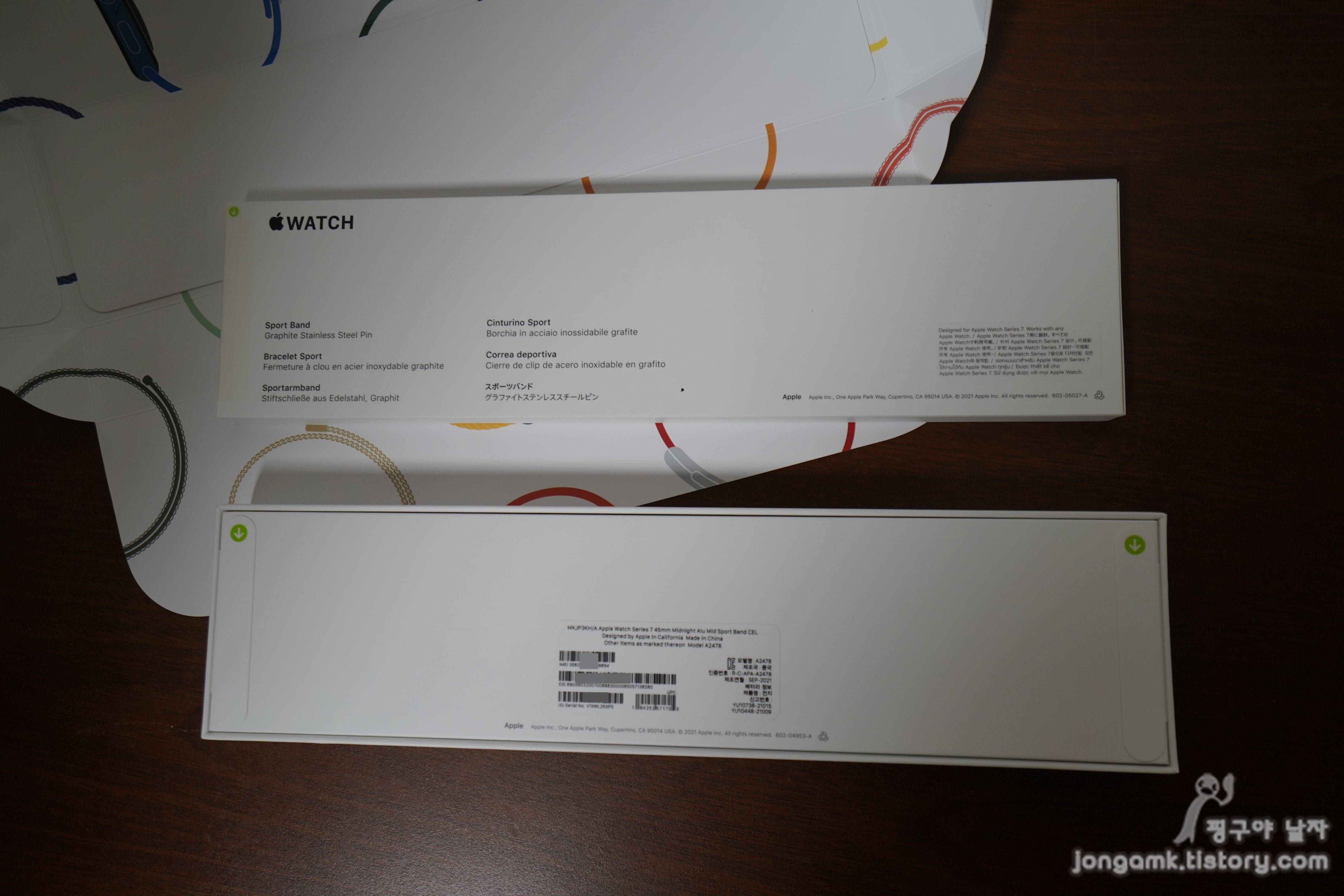 이번에는 애플워치7 본체가 있는 박스를 개봉했습니다. 스트랩과 원 박스로 포장을 할 수도 있었겟지만 분리해서 좀 더 고급스러운 느낌을 갖게 됩니다.