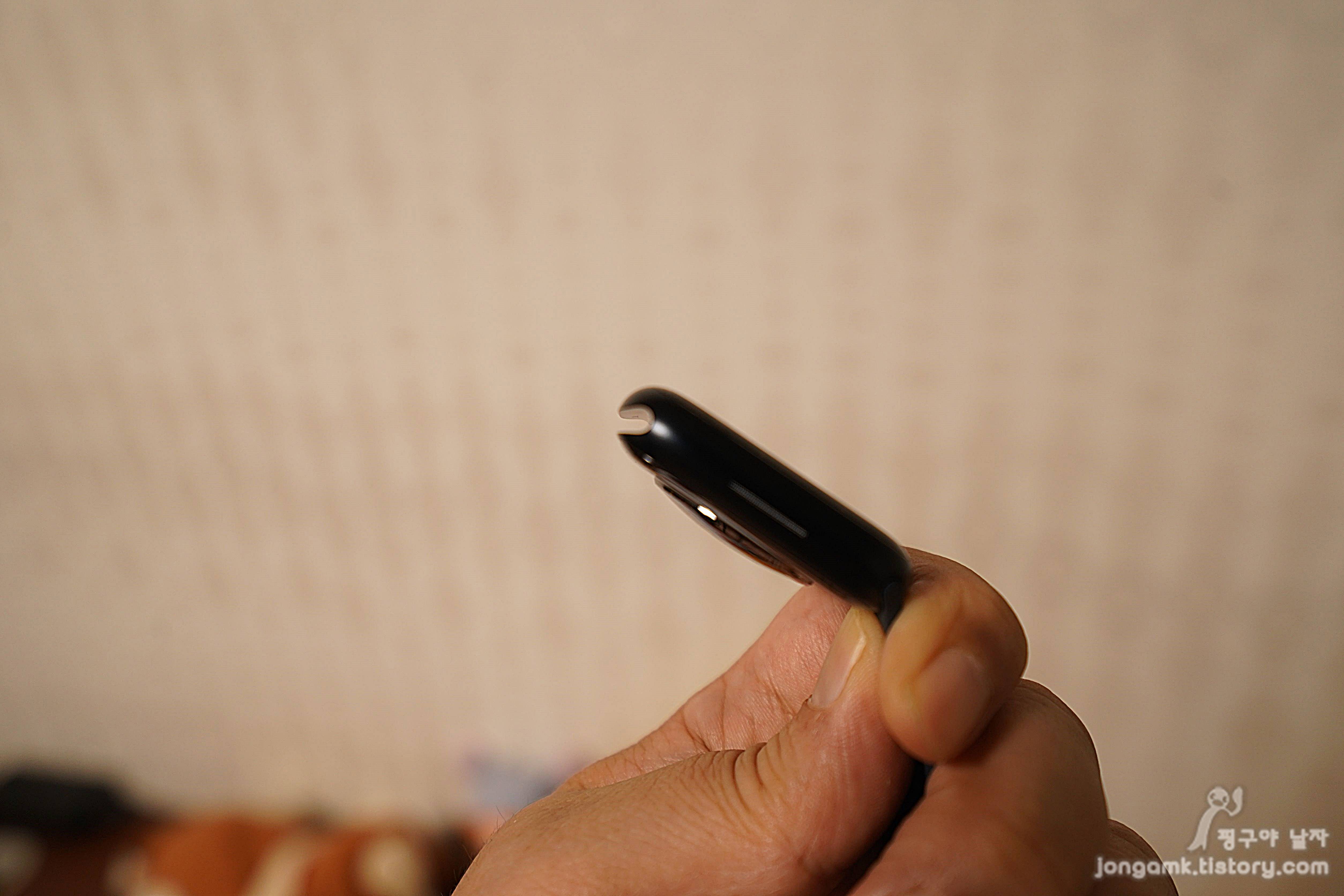 스트랩을 끼우는 애플워치7의 본체 사이드 모습입니다. 일반 스마트워치는 스트랩을 끼우거나 분리할 때 핀의 앞 부분을 밀거나 당겨야 하기 때문에 불편하기도 합니다.