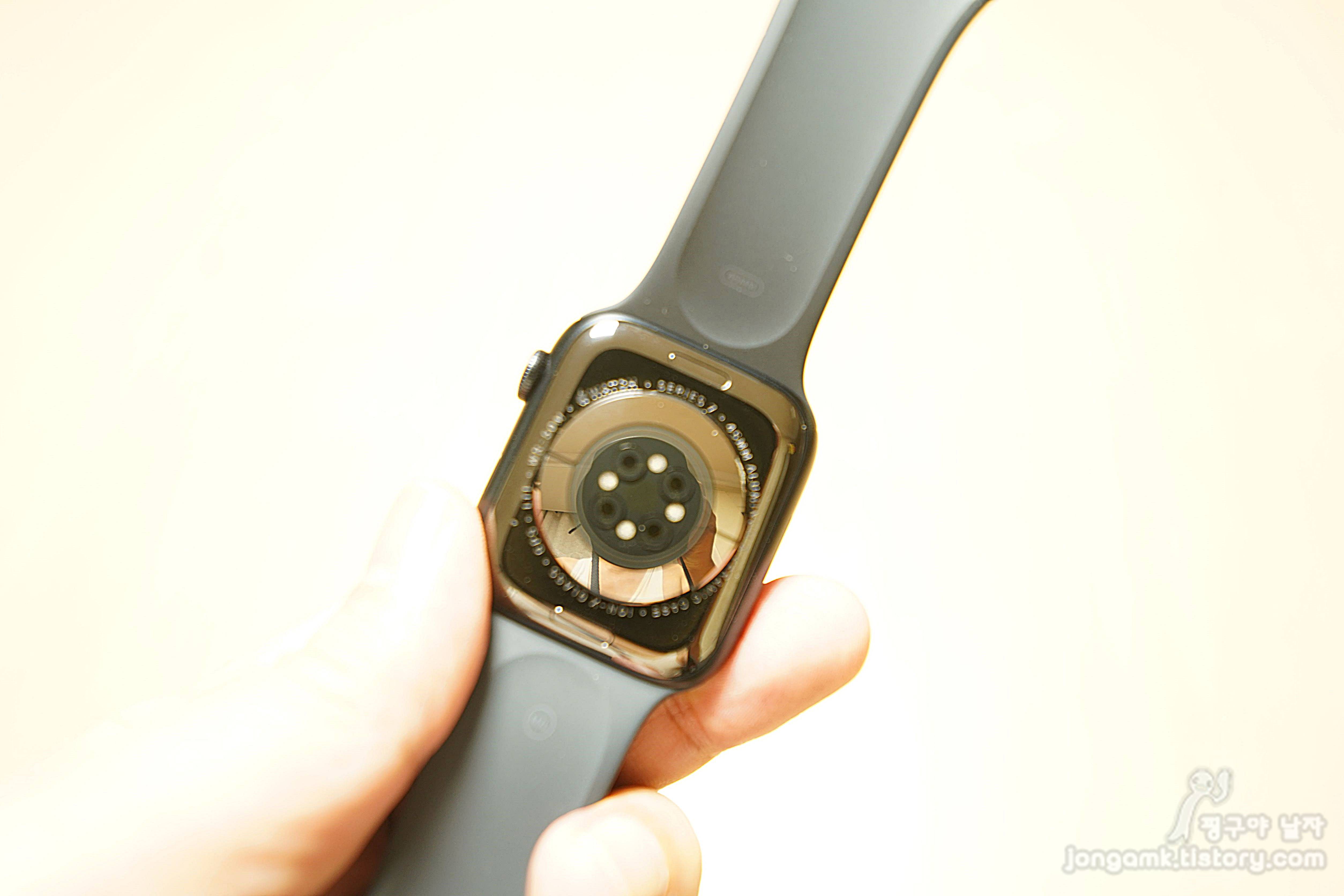 애플워치7세대의 헬스케어 기능은 6세와 같이 혈중 산소 센서, 전기 심박 센서, 3세대 광학 심박 센서, 고 심박수 및 저 심박스 알림, 물규칙한 심장 박동 알림, 심전도 앱등이 제공됩니다. 애플워치 6세대까지는 40mm, 44mm 두 종류였은데 이번에는 41mm, 45mm로 사이즈를 더 크게 하였습니다.