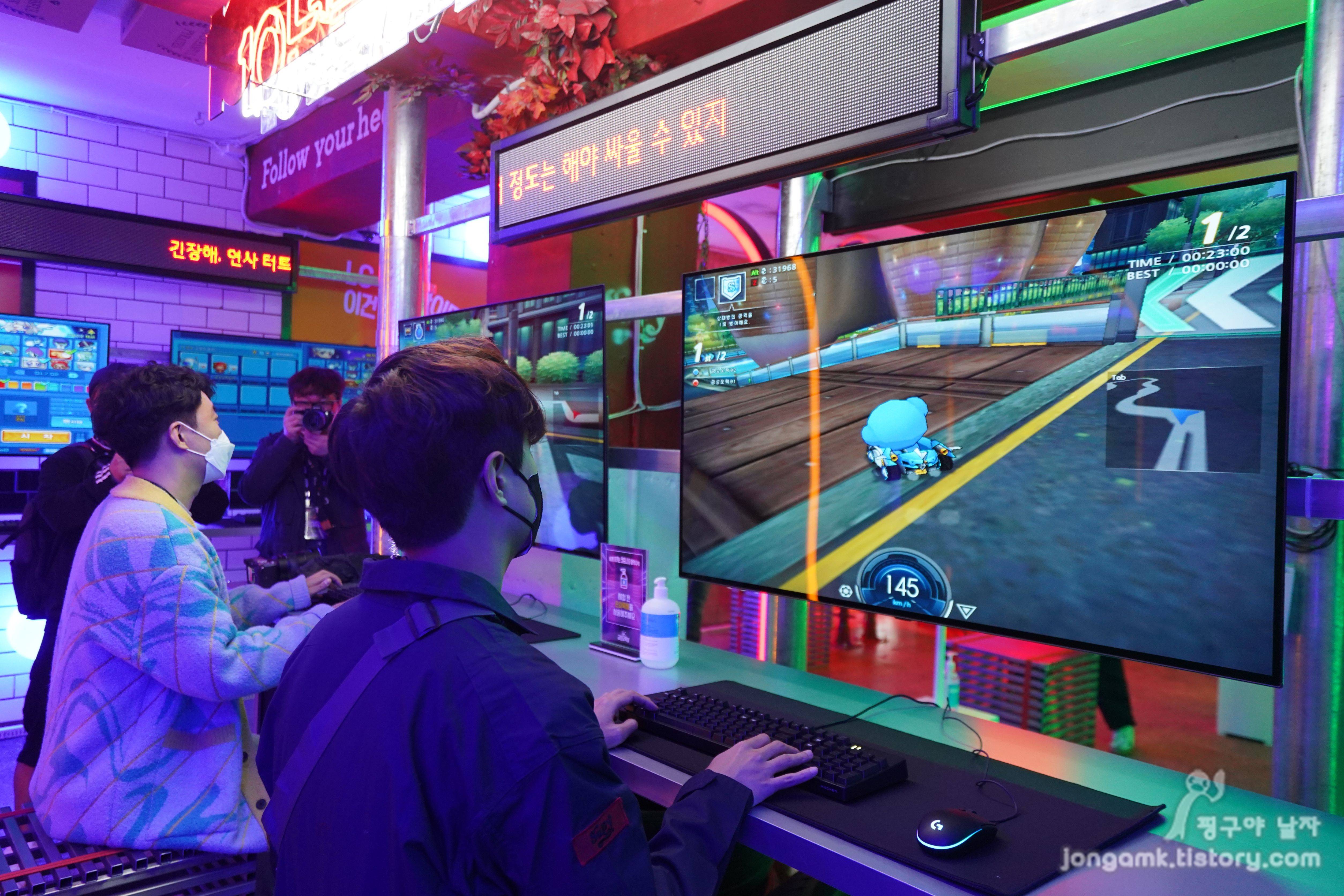 LG올레드TV로 꾸며진 금성오락실~ 선명한 고화질의 올레드TV로 게임을 할 수 있어 몰입도가 장난 아닌 거 있죠. 게임은 크게 PC게임, 콘솔게임, 레트로게임 그리고 레이싱 게임 등이 준비되어 있었습니다.