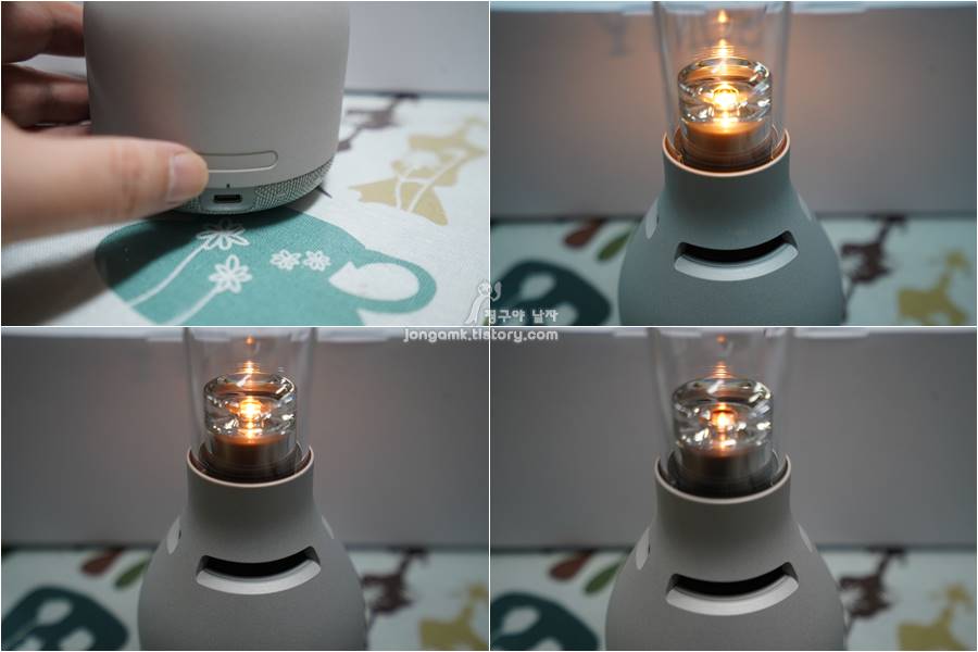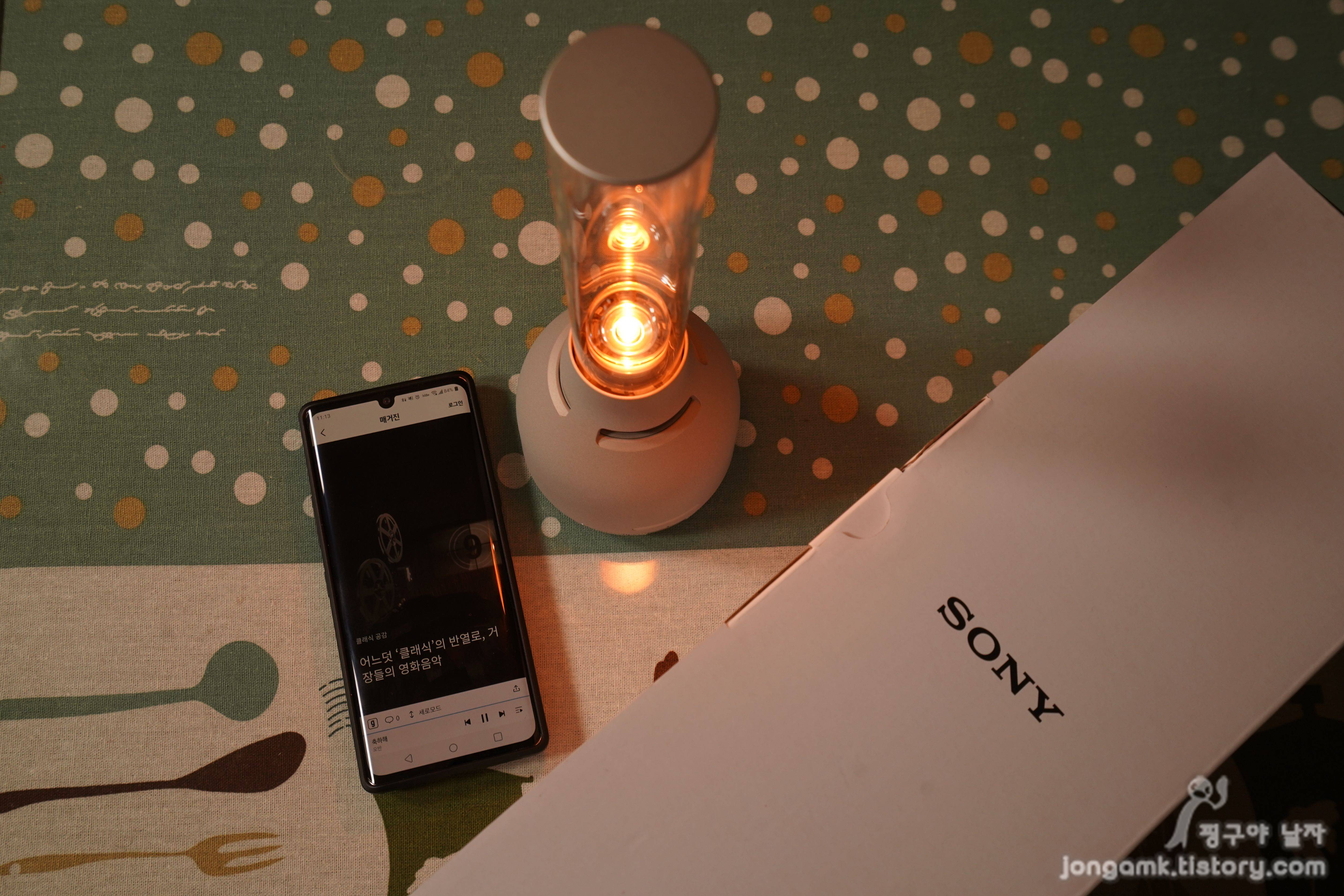 LSPX-S3를 촛불모드를 On한 모습과 Off한 모습은 분위기부터 확실한 차이를 느끼게 합니다. 조명이 오가닉 글래스를 타고 윗부분까지 전달되면서 더욱 묘한 분위기를 연출하는 거 있죠.
