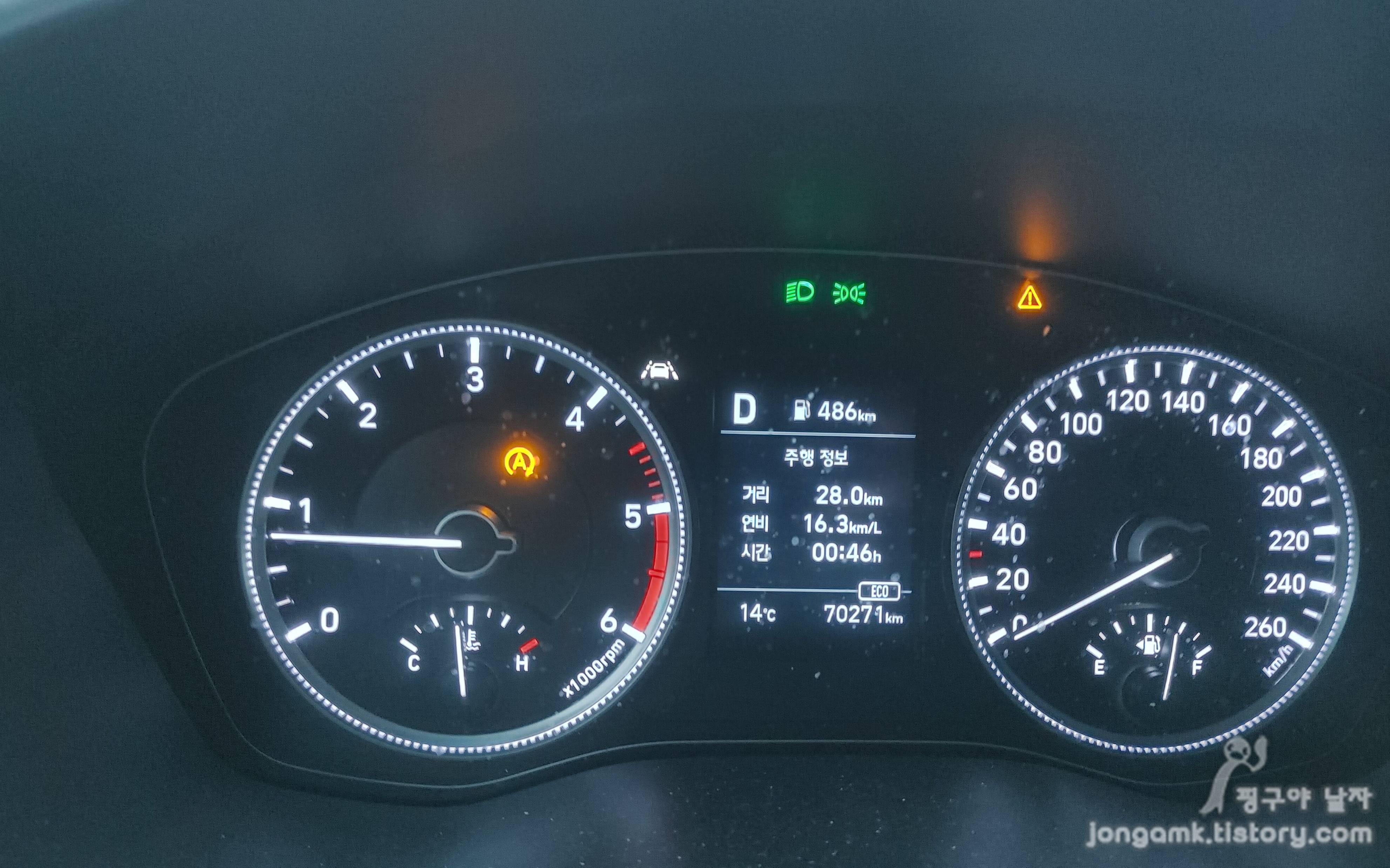 당분간은 시동을 켤 때마다 싼타페TM의 핸들에 있는 메뉴 버튼을 눌러 주행정보로 세팅을 해야겠죠. 이번 주말에 카센터에 가봐야겠어요.