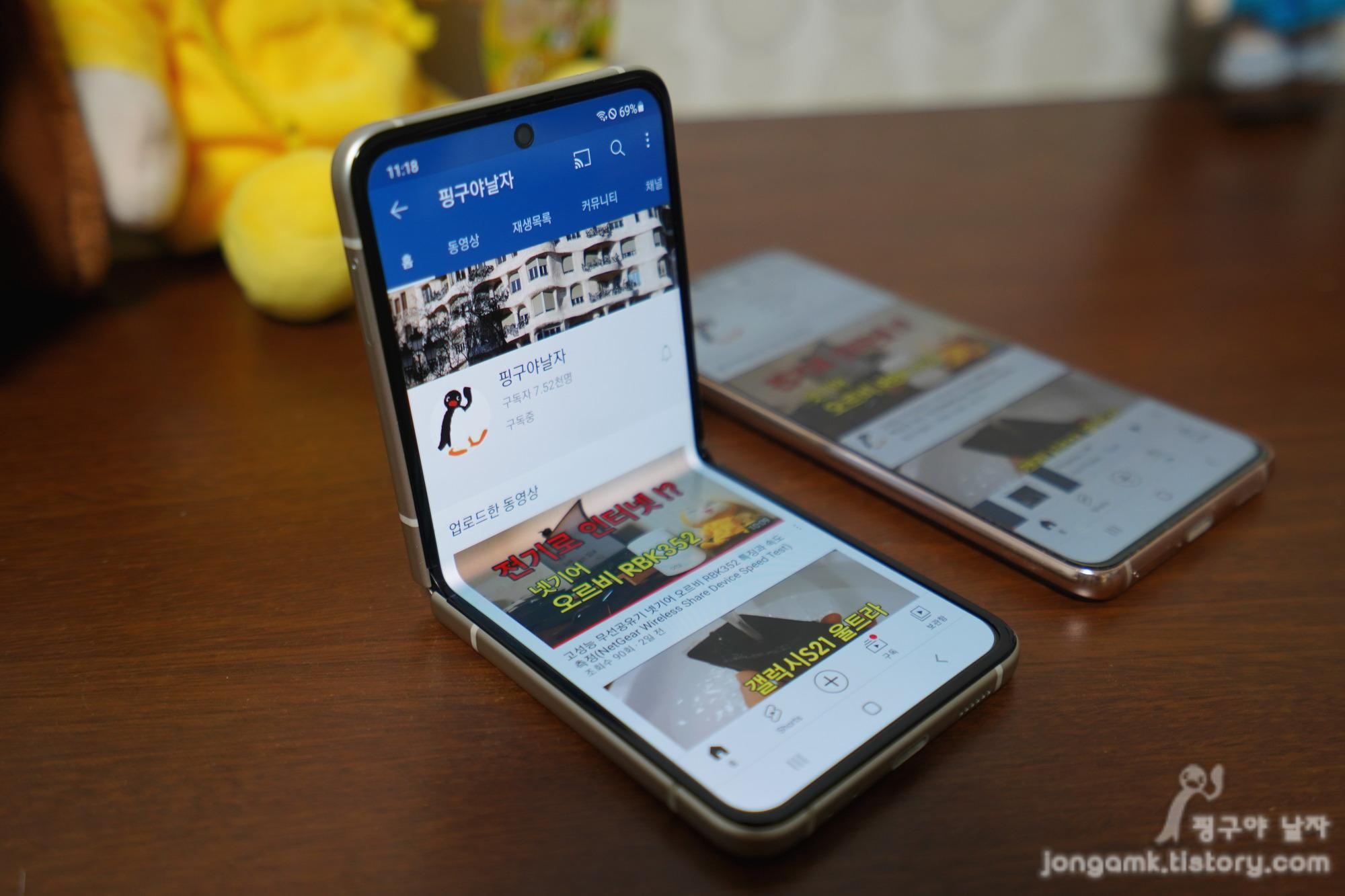 더 많은 화면을 사용할 수 있어 서로 마주 보고 서로 다른 앱을 즐길 수도 있고 대화면으로 다양한 콘텐츠를 즐길 수 있는 것은 장점이 분명합니다. 태블릿을 충분히 대체할 수 있는 대화면의 매력도 느낄 수 있죠.