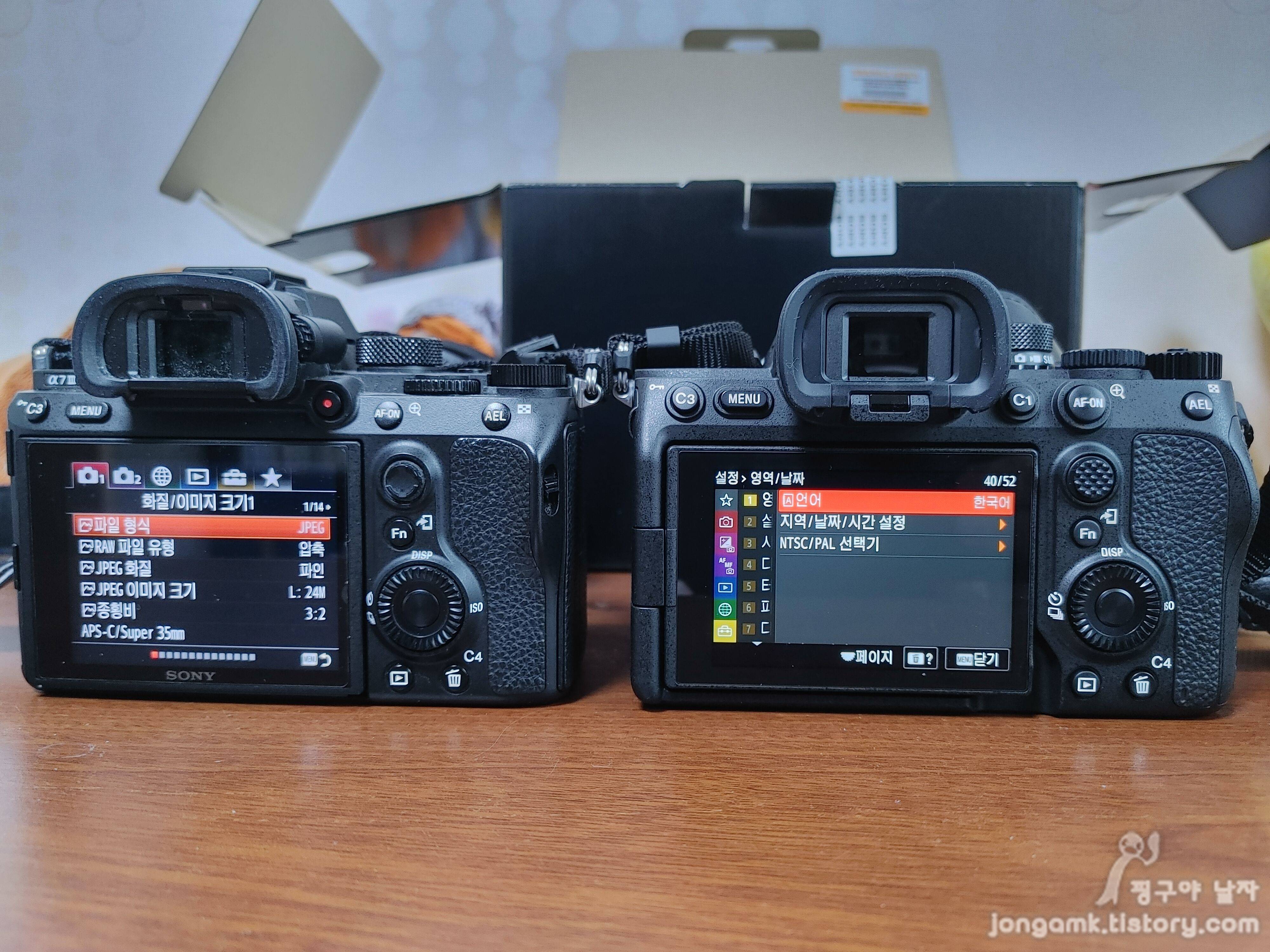기존에 사용하고 있는 AM3가 A7 IV을 함께 놓고 보니 완전 오징어가 된 느낌~ 당연히 구매한 지 3년이 넘었으니 비교하는 게 우습지만 아마도 처음 만나보신 분들은 욕심이 확~ 생겨 지르고 싶으실 겁니다.