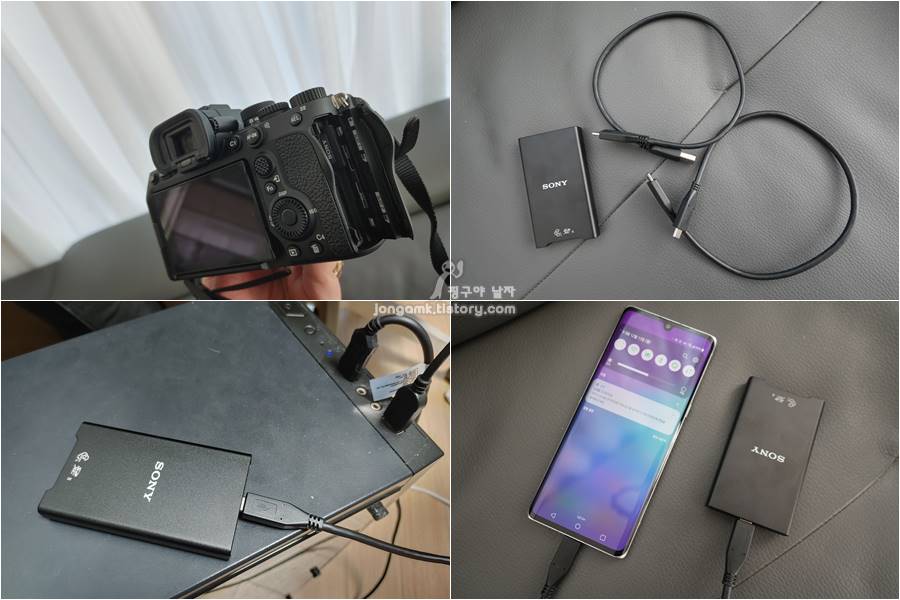 소니의 80GB 메모리카드와 카드리더기를 함께 사용하면 더 좋은데요. 80GB도 충분하지만 사용하다 보면 메모리카드 2개가 있는 게 훨씬 편하답니다.