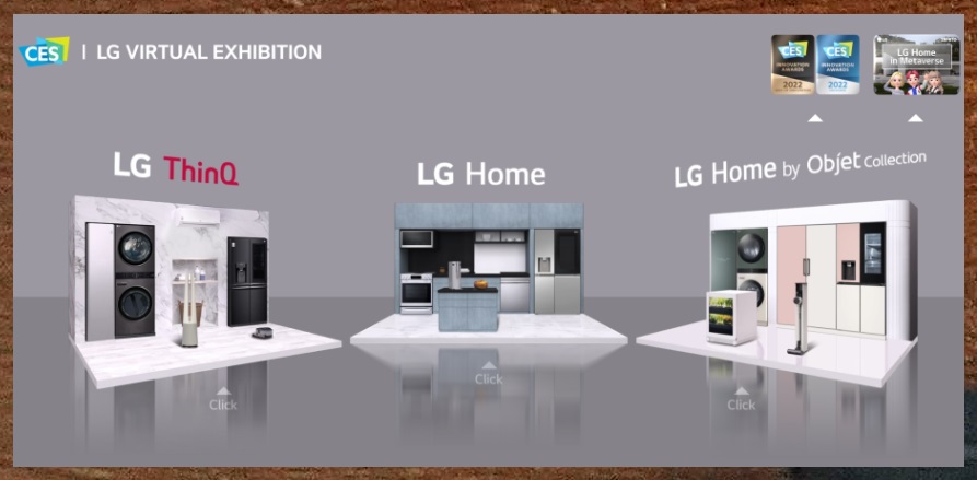 LG전자는 CES2022에 참관하는 관람객들을 위해 3개의 전시관을 마련하였습니다. LG 홈(LG Home), 오브제컬렉션으로 꾸민 LG 홈(LG Home by Objet Collection) 그리고 LG 씽큐(LG ThinQ) 등입니다.