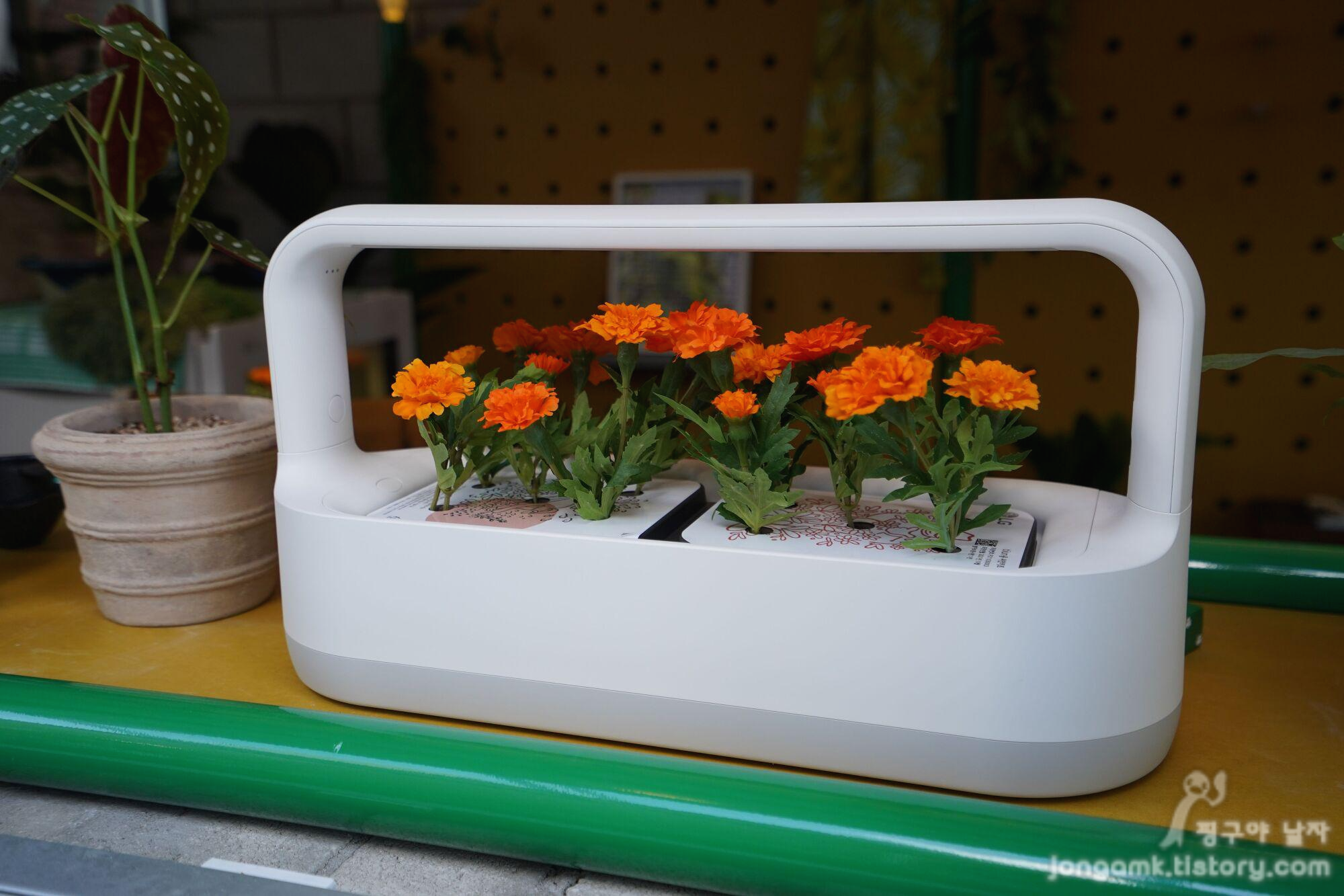 어쩔 틔운~ 저쩔 틔운 미니~ ㅋㅋ 작은 정원을 거실에 꾸미고 싶다면 엘지 틔운 미니를 고민해 보세요. 메리골드와 루꼴라를 화분으로 키우는 것이 아니라 식물 생활가전 엘지 틔운 미니로 키울 수 있게 되었답니다. 작년 10월에 직접 LG 틔운과 틔운 미니를 봤는데 구매한다면 처음부터 LG 틔운을 선택하기에는 다소 용기가 필요할 것 같았어요. 대신 LG 틔운 미니는 욕심 내 볼만 하겠다는 생각이 들었었답니다. 199,000원의 가격이지만 20만원으로 생각해도 부담이 적기 때문이죠. 집 안에 식물을 키웠지만 관리가 쉽지 않아 지금은 화분만 있답니다. 그런데 LG 틔운 미니는 알아서 해주기 때문에 고민해 볼만 하죠. 어떻게 알아서 해 줄까요.