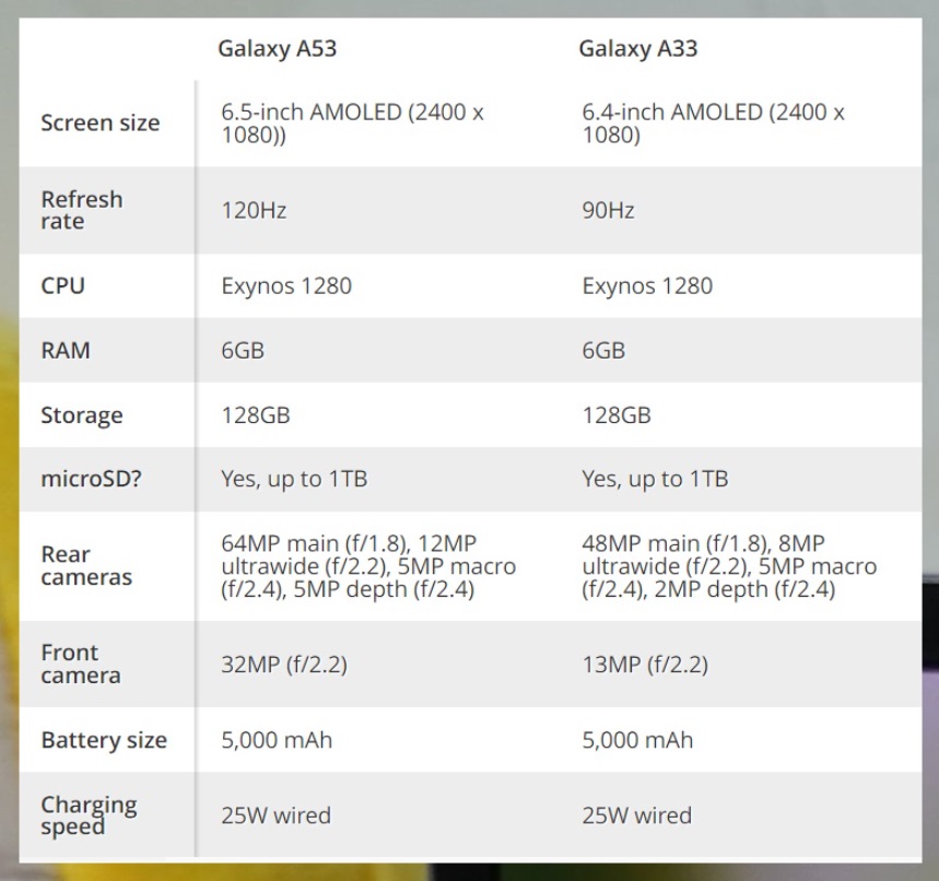 물론 국내에 공식적으로 출시가 되면 예상 가격은 다소 차이가 있을 수 있지만 A53과 A33의 가격차이는 10만원대 내외로 공시지원금을 감안하면 갤럭시A53을 선택하게 될지도 모르겠네요.