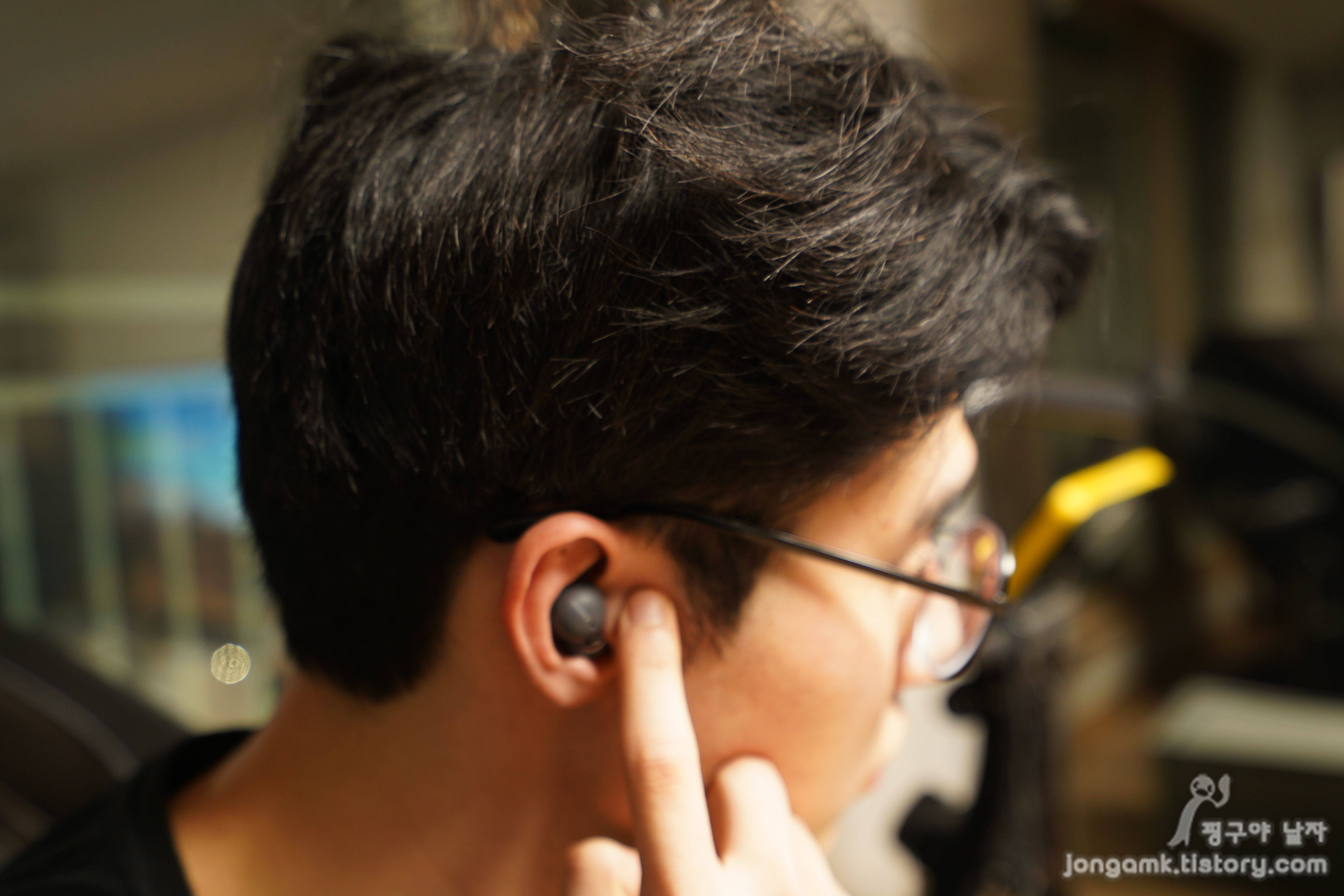 그리고 하루 종일은 아니지만 일반 무선이어폰보다 오래 착용을 해도 편안한 착용감 때문에 부담이 없었어요. 이는 5가지의 피팅 서포터로 높은 착용감을 제공할 뿐만 하니라 상대적으로 작은 사이즈와 4.1g의 가벼운 무게 때문에 아닌가 싶기도 했어요.