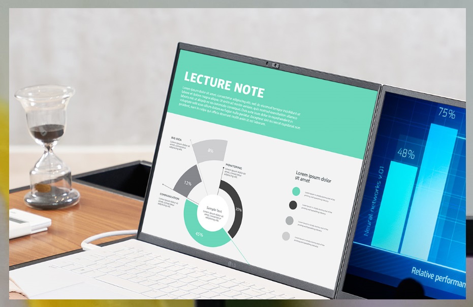 엘지 그램 노트북은 최신 4세대 저장장치(SSD)와 기존 제품 대비 성능이 22% 향상된 최신 저전력 메모리도 탑재하여 효율성을 높였습니다.