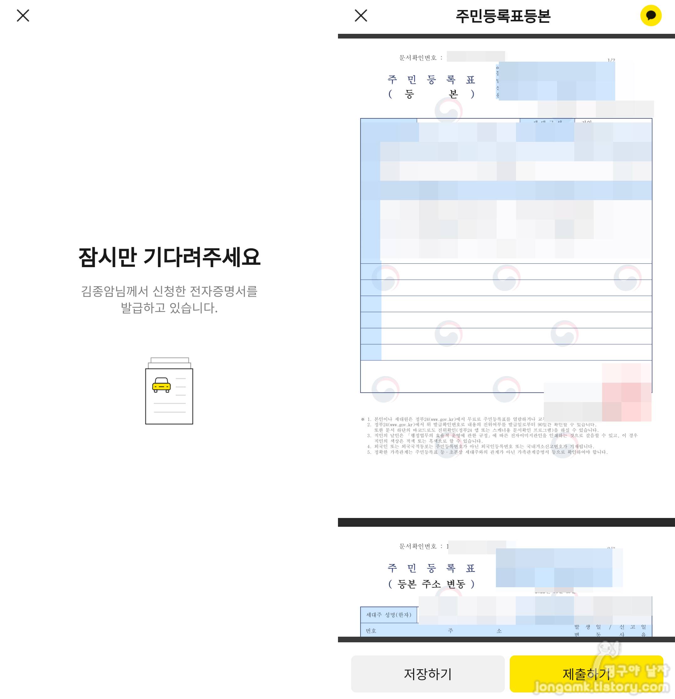 인터넷만 되면 PC에서 편하게 출력할 수 있던 행정서류가 카카오톡으로 처리할 수 있고 상대방에게 카톡으로 보낼 수도 있으니 정말 편해지겠죠. 다만 실물이 아니기 때문에 개인간 전달은 주의해야 합니다.