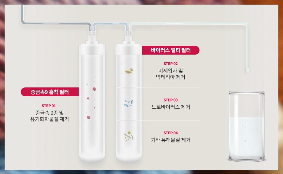 아무래도 정수기는 위생부분이 제일 신경 쓰이게 되는데 엘지 퓨리케어 듀얼 정수기 오브제컬렉션은 먹는 물이 지나는 정수기 내부 전 구간을 고온수로 살균해주는 고온살균 기능이 새롭게 적용하였습니다.
