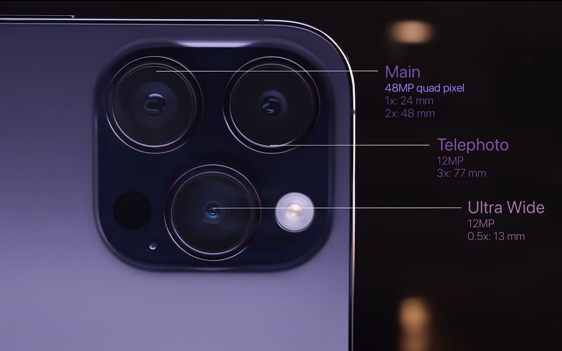 두 번째는 향상된 카메라 성능으로 아이폰14 프로에는 4800만 화소 메인 센서를 도입해 4X 해상도 이미지가 가능하며 더 나은 저조도 사진 성능과 함께 더 선명한 이미지를 만들어 냅니다.