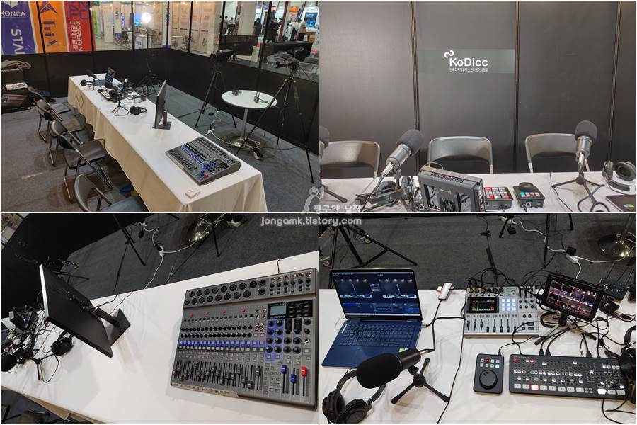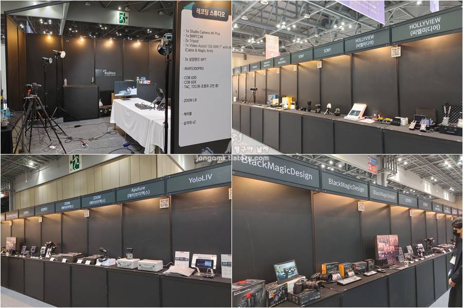 코딕이 운영하는 1인미디어 특별관에서 딱 알맞은 방송장비를 세팅해 놓은 부스도 한 켠에 있었습니다. 스튜디오 카메라 4K플러스, BMPCC 4K, 2x Tripod 그리고 Video Assist 12G HDR 7" with Mimi, 3x 삼양렌즈MFT, MARS300PRO, 조명(COB60D, COB60X, T4C, TC2), ZOOM L8, 케이블 그리고 삼각대x2 등으로 구성되어 있습니다. 일부 변경될 수도 있다고 해요.