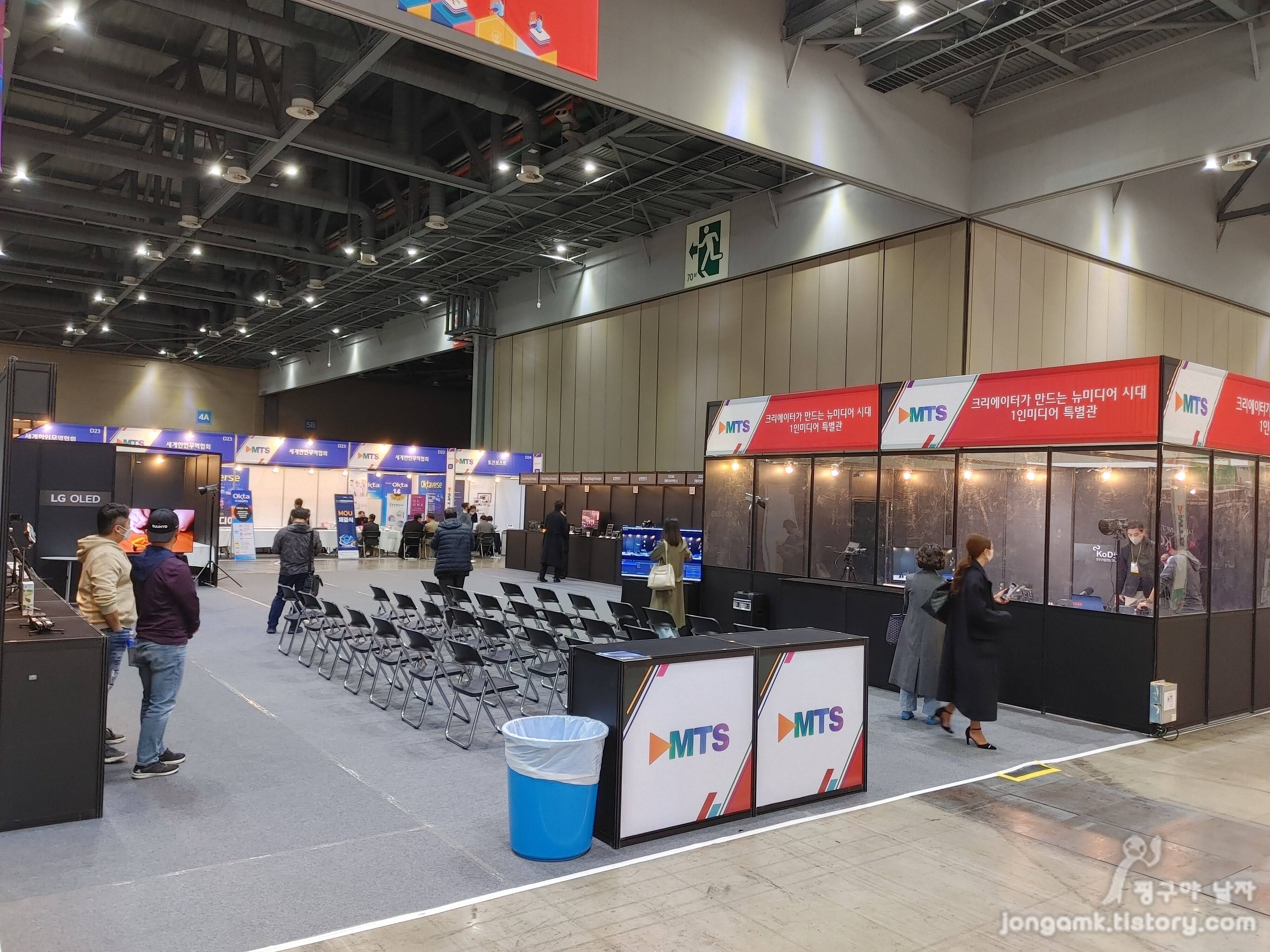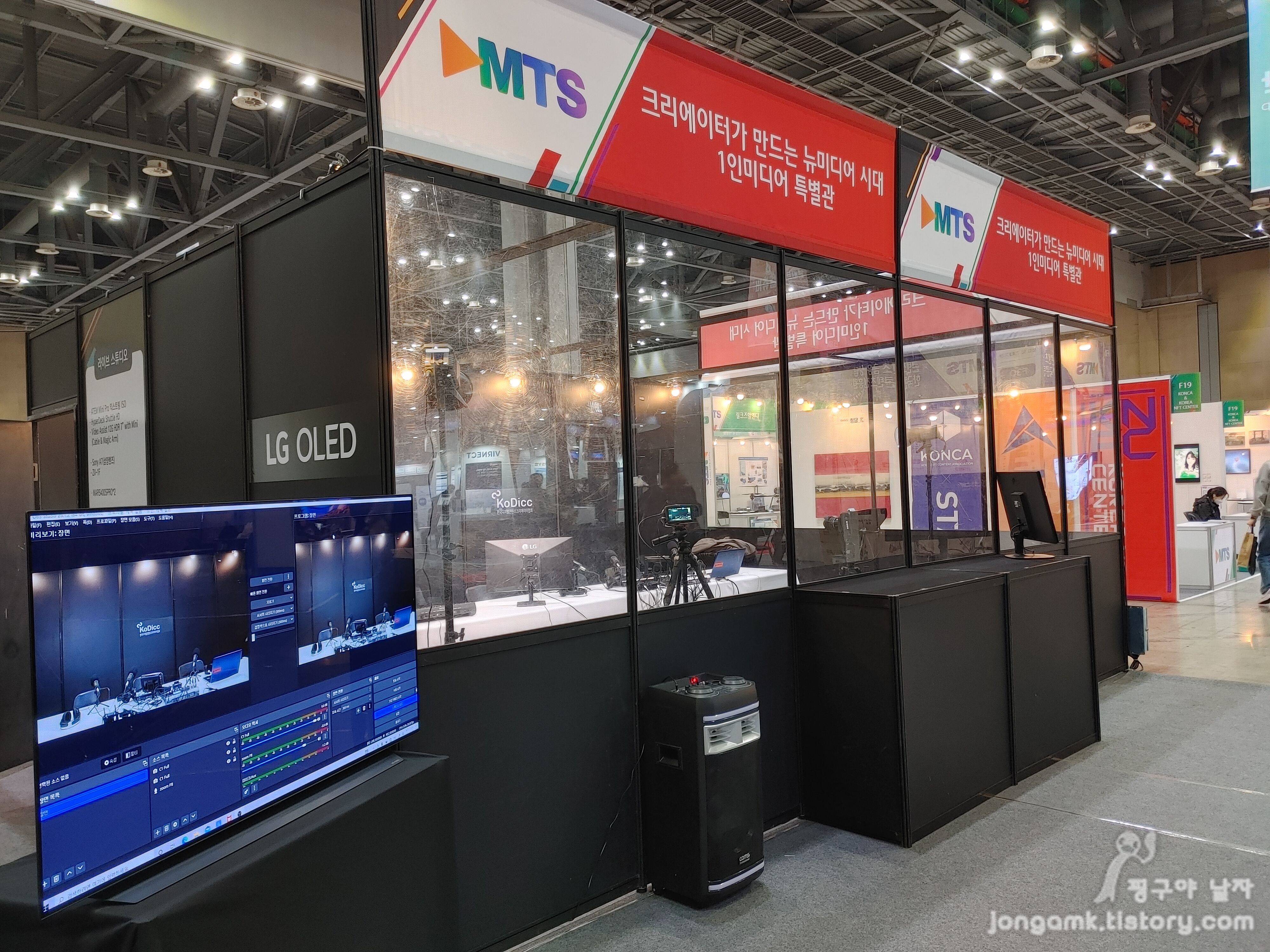 디지털 미디어 테크쇼(MTS)는 과학기술정보통신부, 경기도 고양시가 주최하고 정보통신산업진흥원, 한국방송통신전파진흥원 등이 주관하며 (사)한국디지털콘텐츠크리에이터협회(이하 코딕), LG전자 등 다양한 업체가 후원하여 2022년 11월23일(수) ~ 25일(금)까지 킨텍스 제1전시장에서 개최되었습니다. 1인미디어 특별관을 운영하는 코딕은 그동안 코엑스와 AT센터 둥에서 유튜버를 비롯한 1인 미디어들을 위한 전시회를 꾸준히 개최하였습니다. 코로나로 인해 잠시 주춤했던 행사라 더욱 기대가 되었습니다. 디지털 미디어 테크쇼는 내일까지 개최되며 무료 입장이니 초보 유투버를 비롯해 1인 미디어에 관심이 있는 분들은 시간이 되시는 분들은 참관하면 어떨까 싶네요.