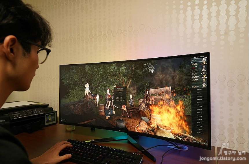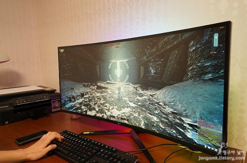 45인치 LG 울트라기어 올레드 커브드 모니터는 WQHD(3440 x 1440) 해상도와 21:9 화면비를 제공하며 LG 모니터 가운데 처음으로 800R 곡률의 화면을 적용한 것이 특징이지만 일반 모니터와 큰 차이는 없다고 생각합니다.