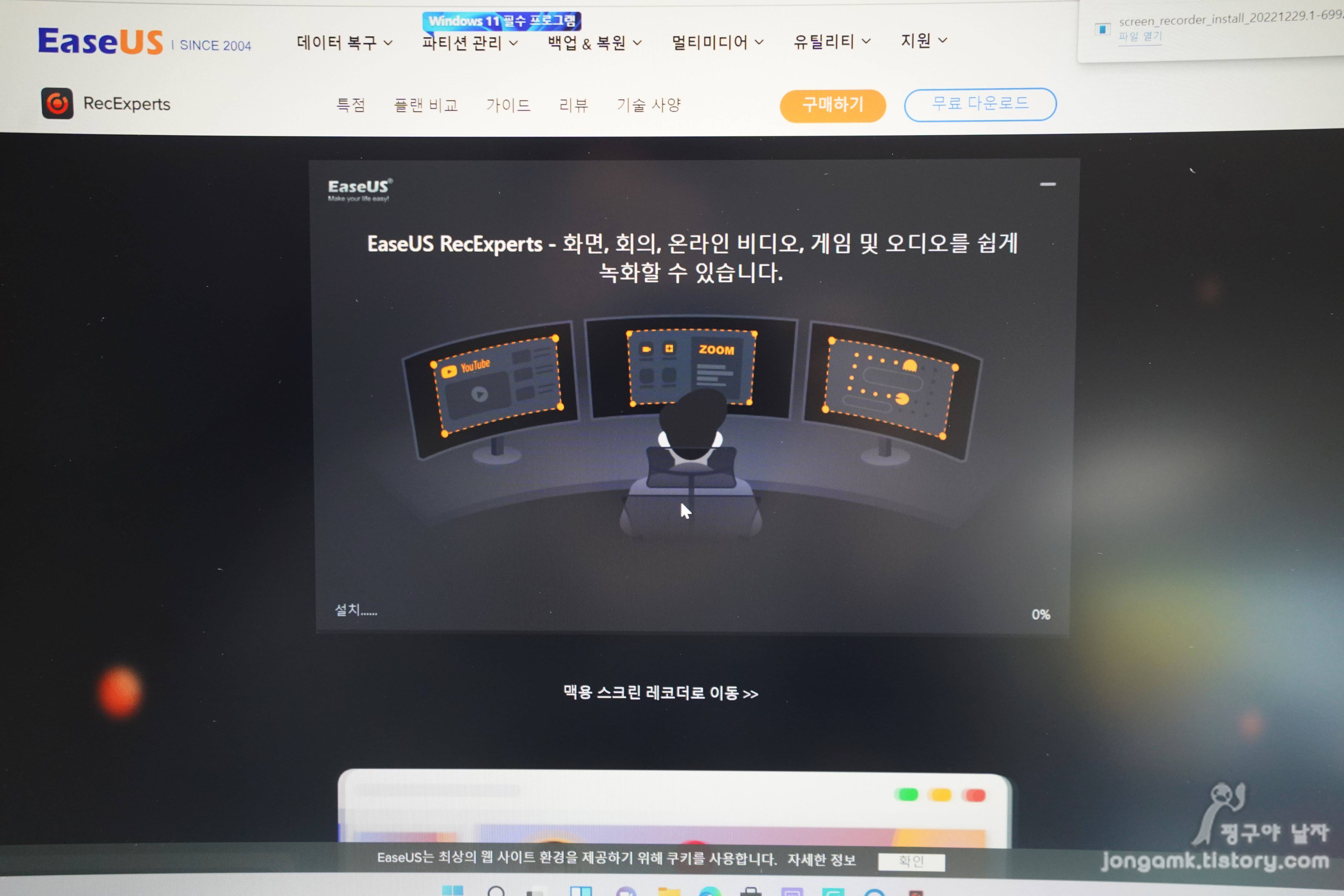 화면녹화프로그램 EaseUS RecExperts로 화면을 녹화하는 모습을 동영상으로 촬영해 보았습니다. 얼마나 간단한지 직접 눈으로 확인해 보시면 실감이 나지 않을까 싶네요.