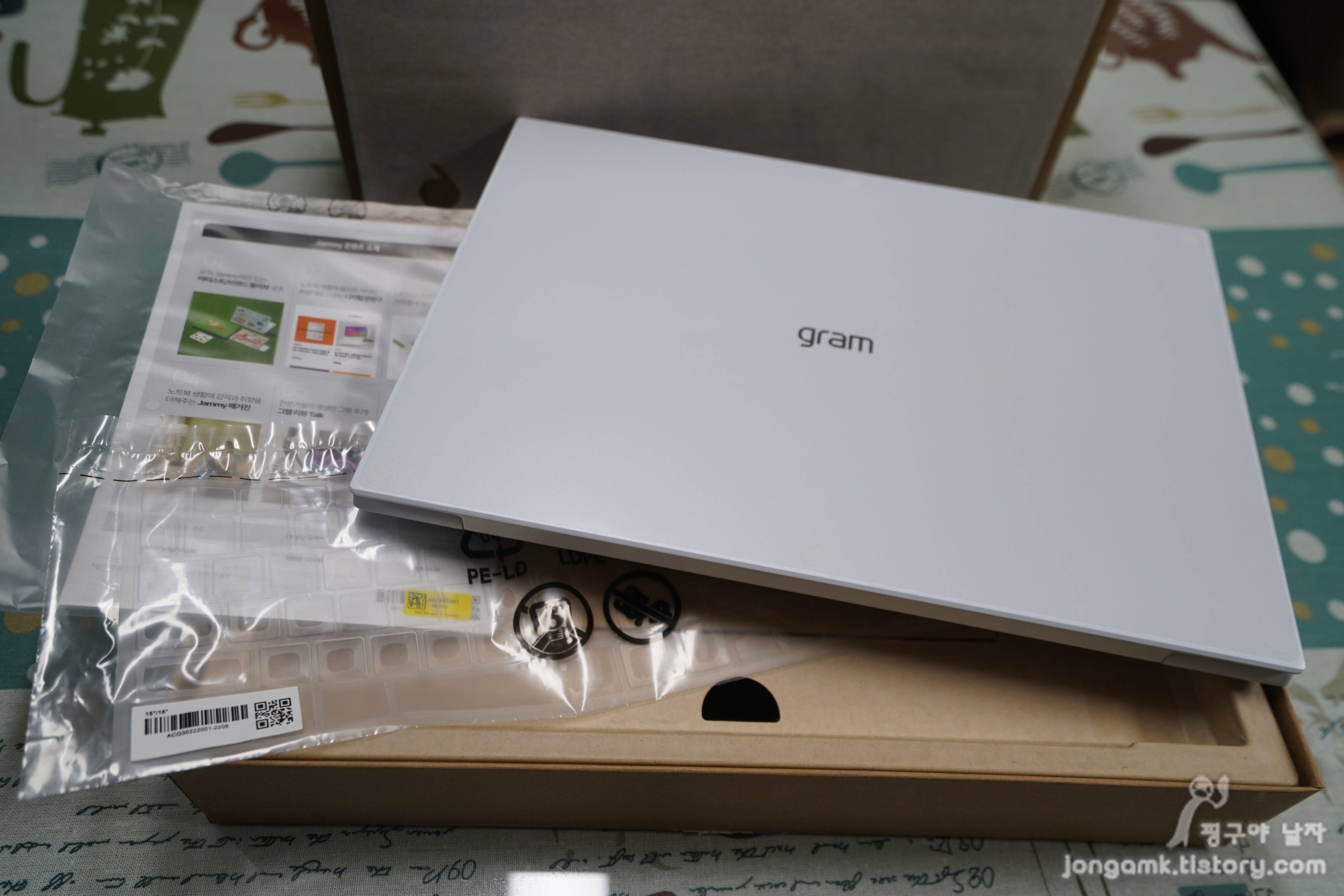 언박싱 순서가 가물가물 하네요. ㅋㅋ 좌우지간 LG그램16 12세대 16Z90Q-GA76K과 사용설명서 그리고 키보드 스킨을 꺼냈습니다. 막상 개봉하기 시작하면 일사천리~ 망설임 없이 ㅋㅋ