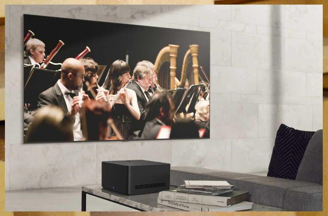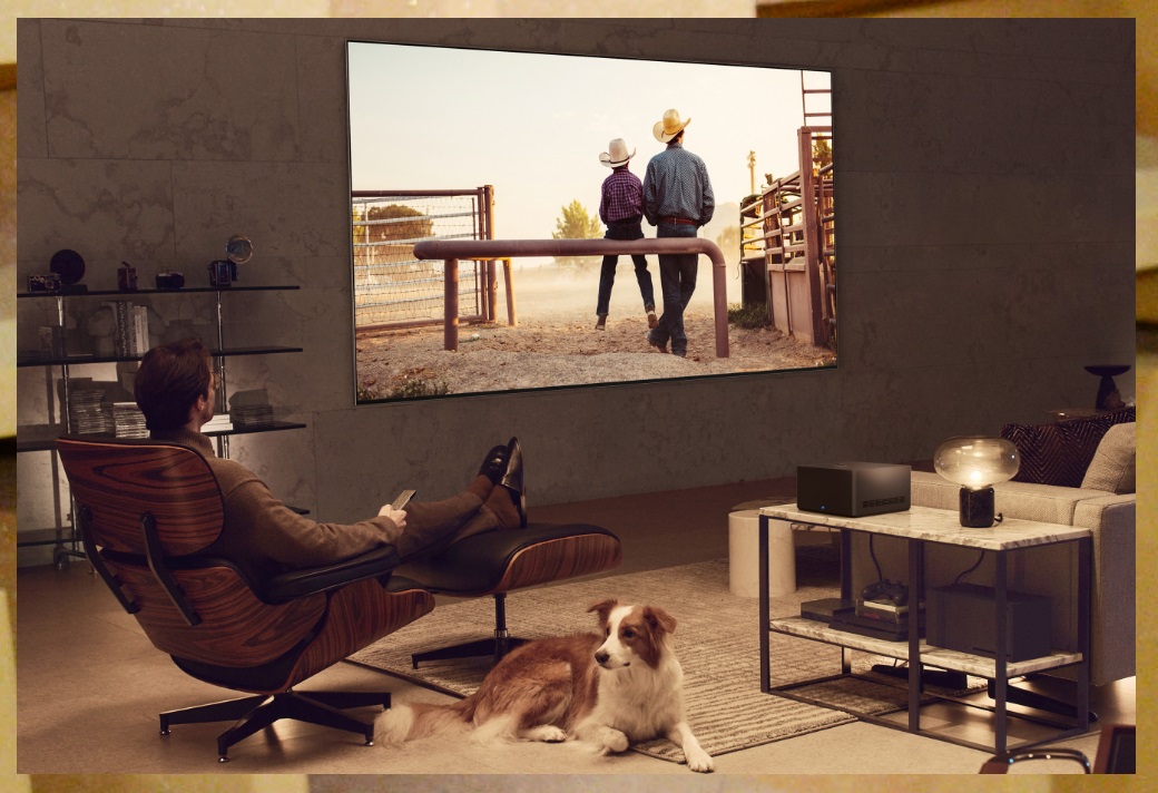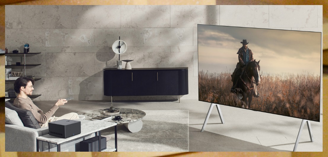 결론적으로 대화면 TV LG 시그니처 올레드M(97M3)의 핵심 포인트는 주변 기기와 연결된 제로 커넥트 박스는 소파 옆에 설치하고 TV를 벽이나 전용 스탠드와 함께 설치해 전원을 제외한 모든 선 없이 주변 공간을 깔끔하게 정리할 수 있다는 겁니다.