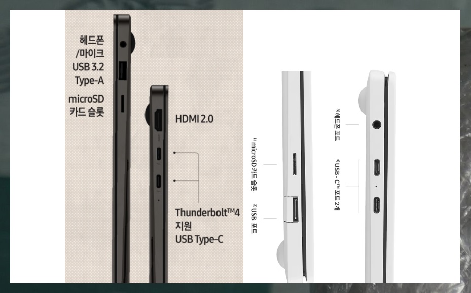개인적으로는 그램2022년형 16인치 모델(16Z90Q-GA76K)을 사용하고 있는데 갤럭시 북3 울트라보다 캔싱컨 락과 USB포트 1개 더 있습니다. 아직은 HDMI포트를 많이 사용하고 있어 먼저 보게 됩니다.