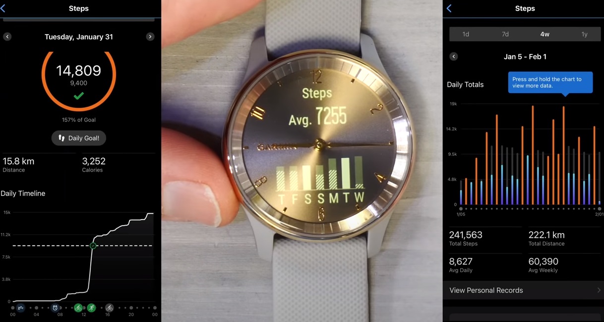 이전에도 가민은 비슷한 스타일의 스마트워치를 출시했으나 가격이 비싸 많은 사랑을 받지 못했었죠. 그러나 작년의 비보무브 스포츠는 귀엽고 합리적인 가격을 갖는 기본 피트니스 트래커였습니다.
