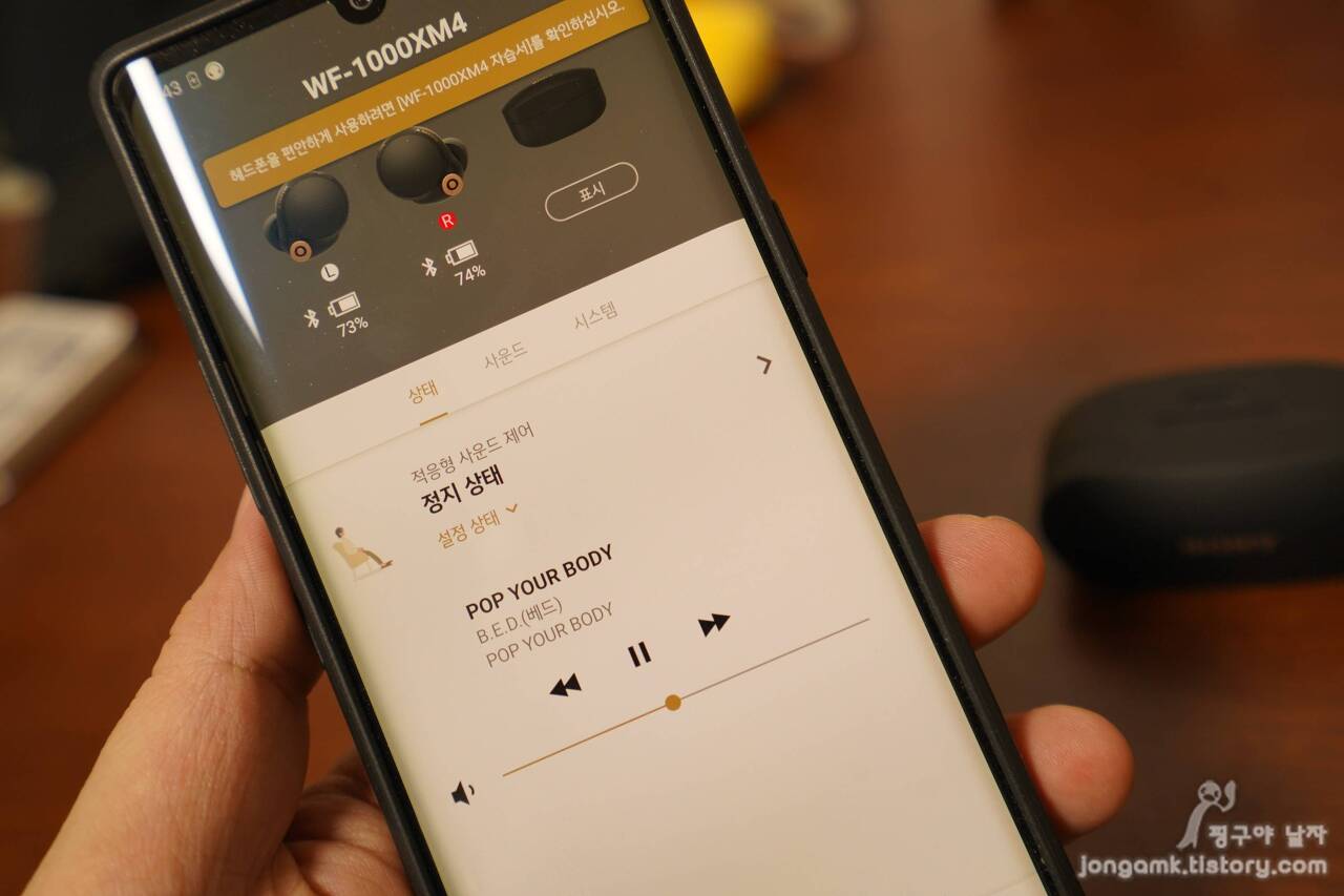 그리고 WF-1000XM4와 동일한 터치 패널 컨트롤을 사용합니다. 노이즈 캔슬링과 적절한 배터리 수명의 영향이 있겠지만 컴팩트하고 좀 더 슬림한 디자인으로 적용하였으면 하는 바람이 있습니다.