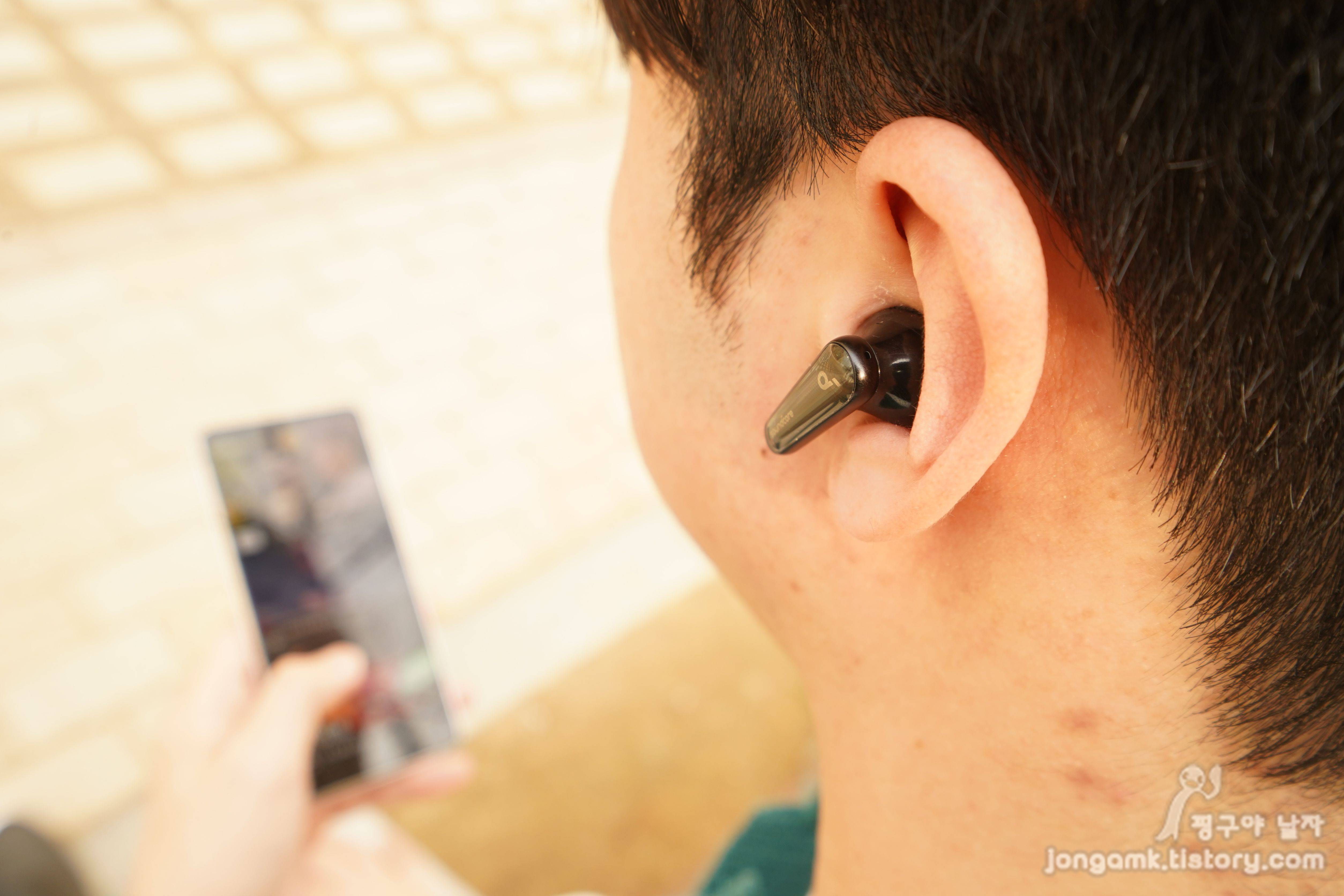 왜냐면 일반 무선이어폰의 경우 스템 면이나 이어후드를 터치해서 제어하게 되어 있는데 터치감도가 좋지 않으면 사용자에 따라서 불편감이 있을 수 있거든요. 사운드코어 리버티4의 제어방식은 처음 사용해 보는데 개인적으로는 더 좋았어요.