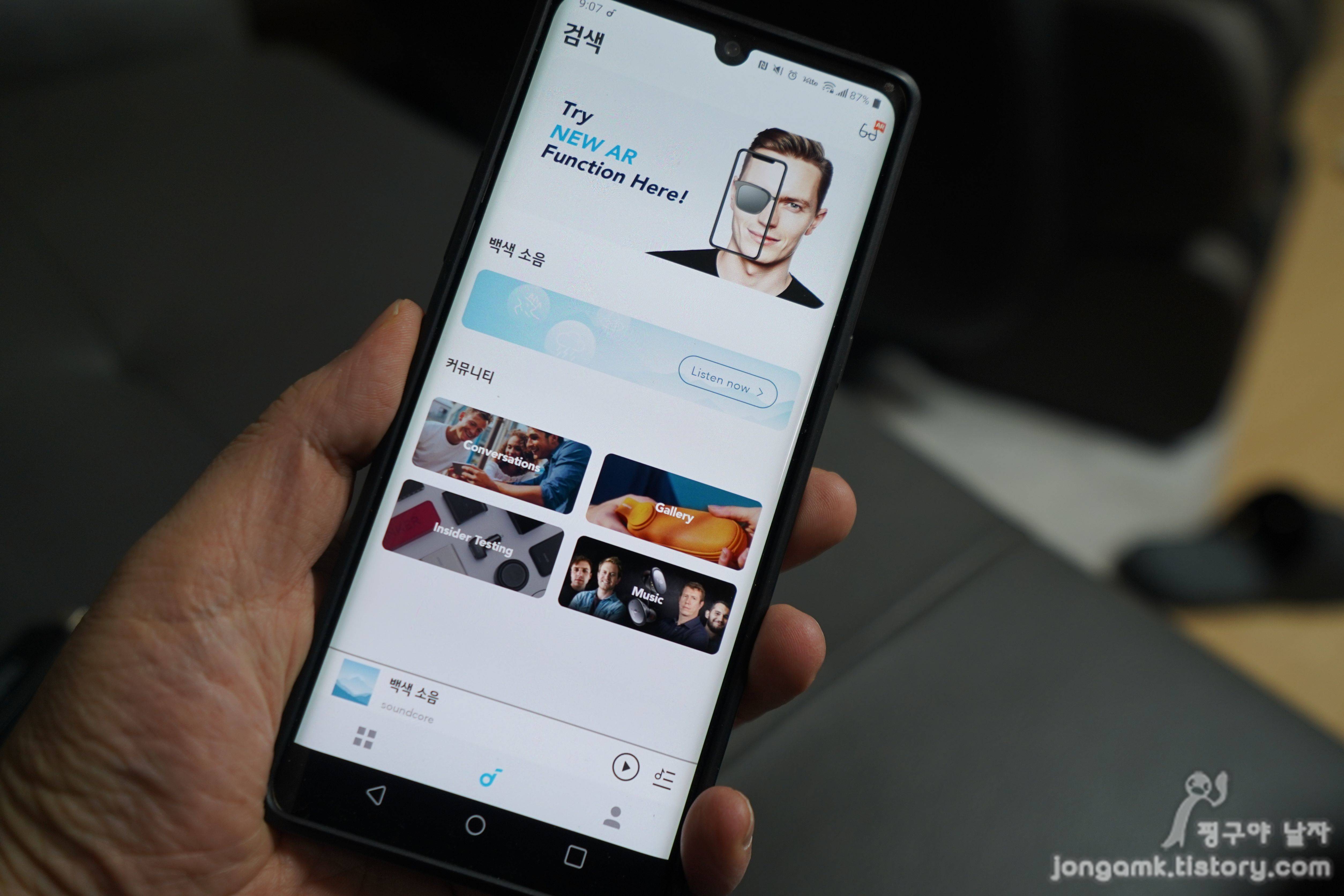 사운드코어는 흔한 무선이어폰들의 전용앱들과는 다른 부분이 몇 가지 있어 살짝 놀랐습니다. 무선이어폰을 처음 사용하면 아무래도 익숙치 않은 것이 제어 부분일 텐데 사운드코어 앱은 이것부터 달랐습니다.
