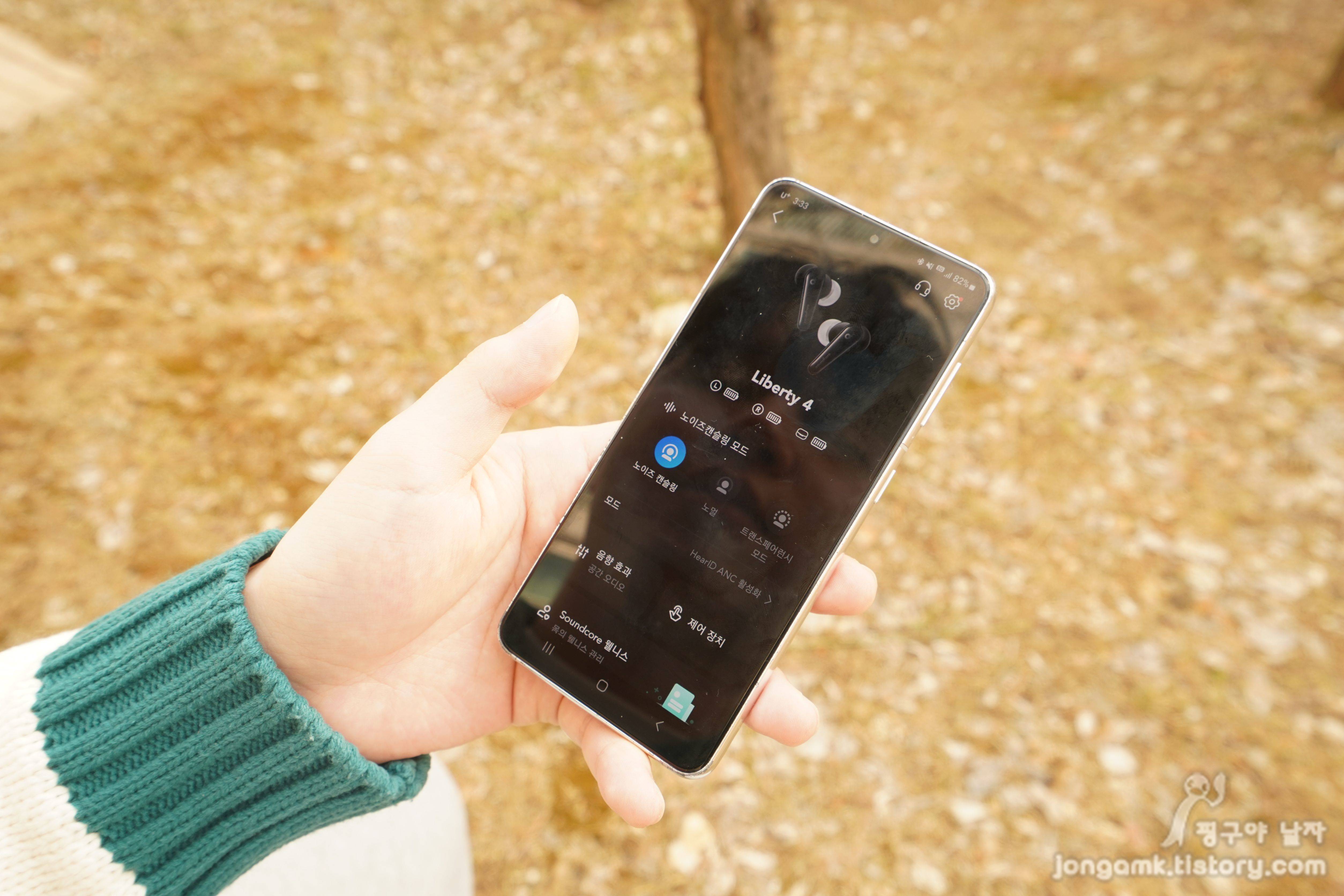 실내보다는 외부에서 음악을 많이 듣게 되는데 사운드코어가 독자기술로 개발한 울트라 노이즈 캔슬링2,0은 좀 달랐어요. 주변의 소음에 따라 노이즈캔슬링 강도가 자동으로 조정이 된다고 하지만 일상에서는 구분이 쉽지 않았던 게 솔직한 후기입니다. 그러나 노멀과는 확실하게 차이가 났습니다. 다만 노이즈캔슬링과 노멀의 전환 시 인터벌이 미세하게 있는 것은 아쉬움이라면 아쉬움으로 지적하고 싶습니다.