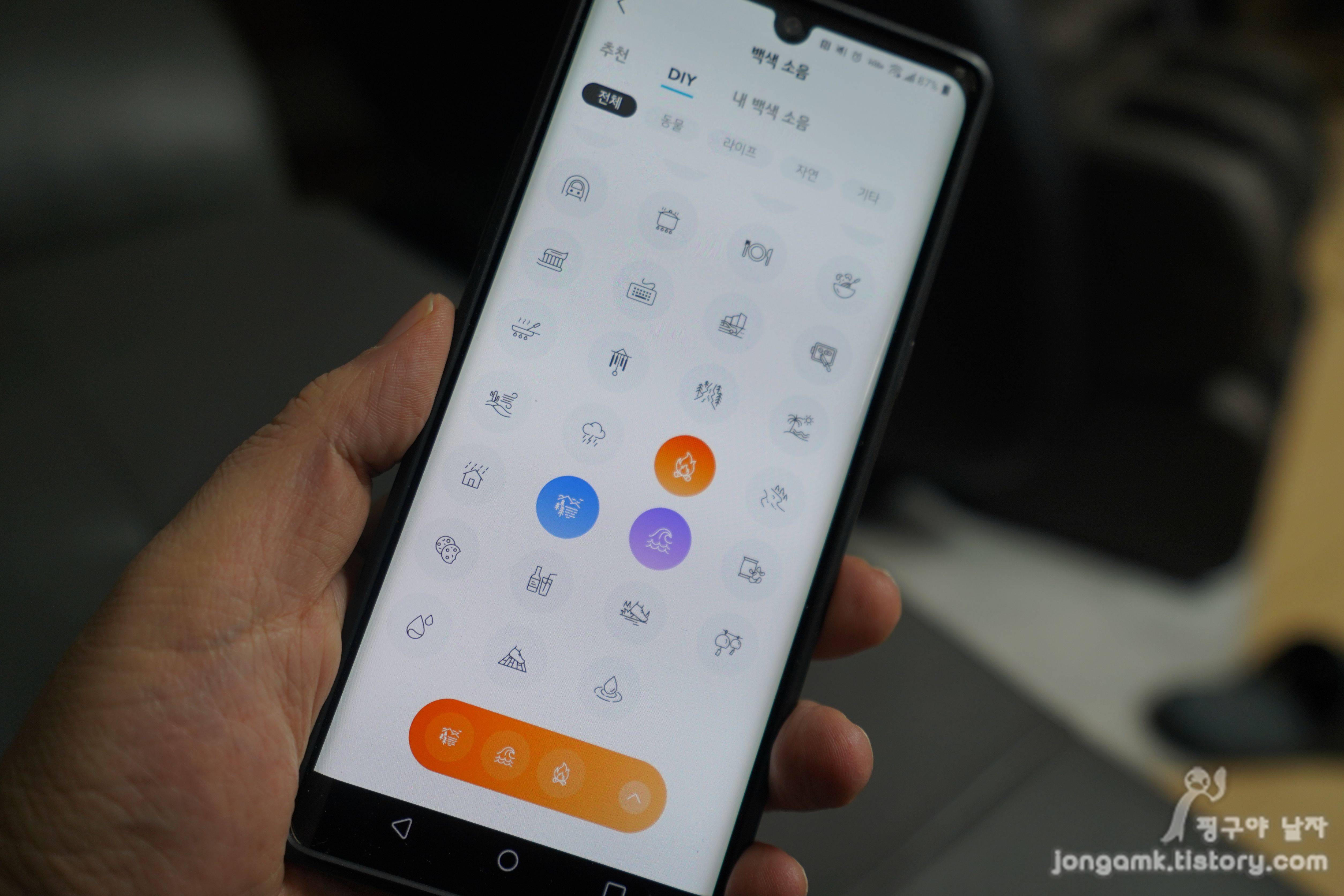 사운드코어 리버티4에서는 수집가지의 백색소음을 제공해 3개까지 선택해 들을 수 있어요. 완전 만족~ 꼭 사용해 보라고 추천하고 싶네요, 장작 타는 소리와 바닷소리를 선택해 들으면 마치 캠핑온 듯한 기분이 드는 거 있죠. 꼭 들어보세요.