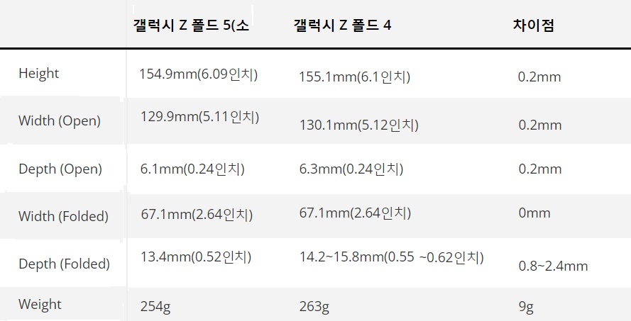 갤럭시Z 폴드5의 무게는 전작보다 9g 가벼운 254g이라는 소식에 대세인데요. 가벼워졌는데~ 라는 말이 나올 정도의 무게 감소가 아닌가 싶기도 합니다.
