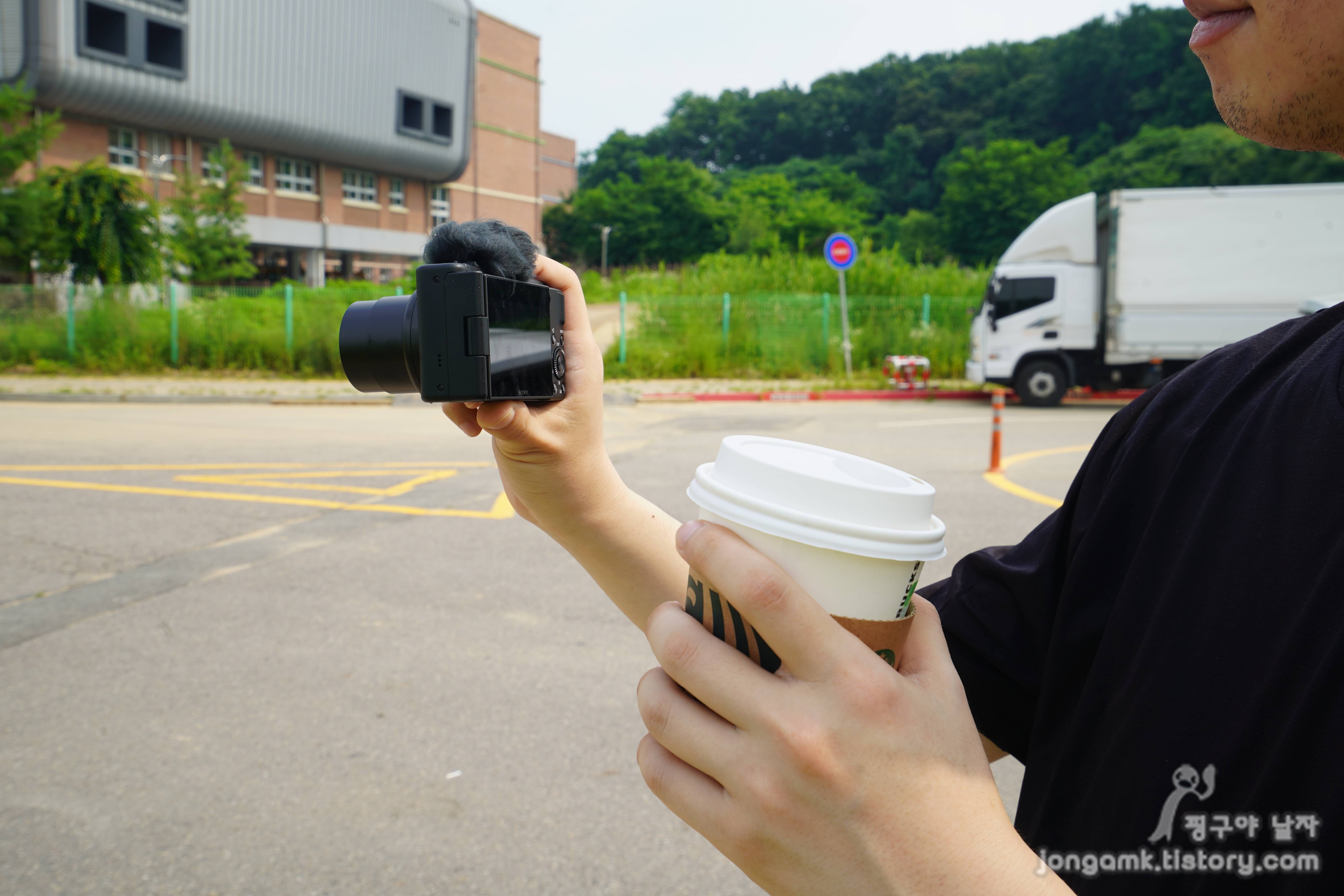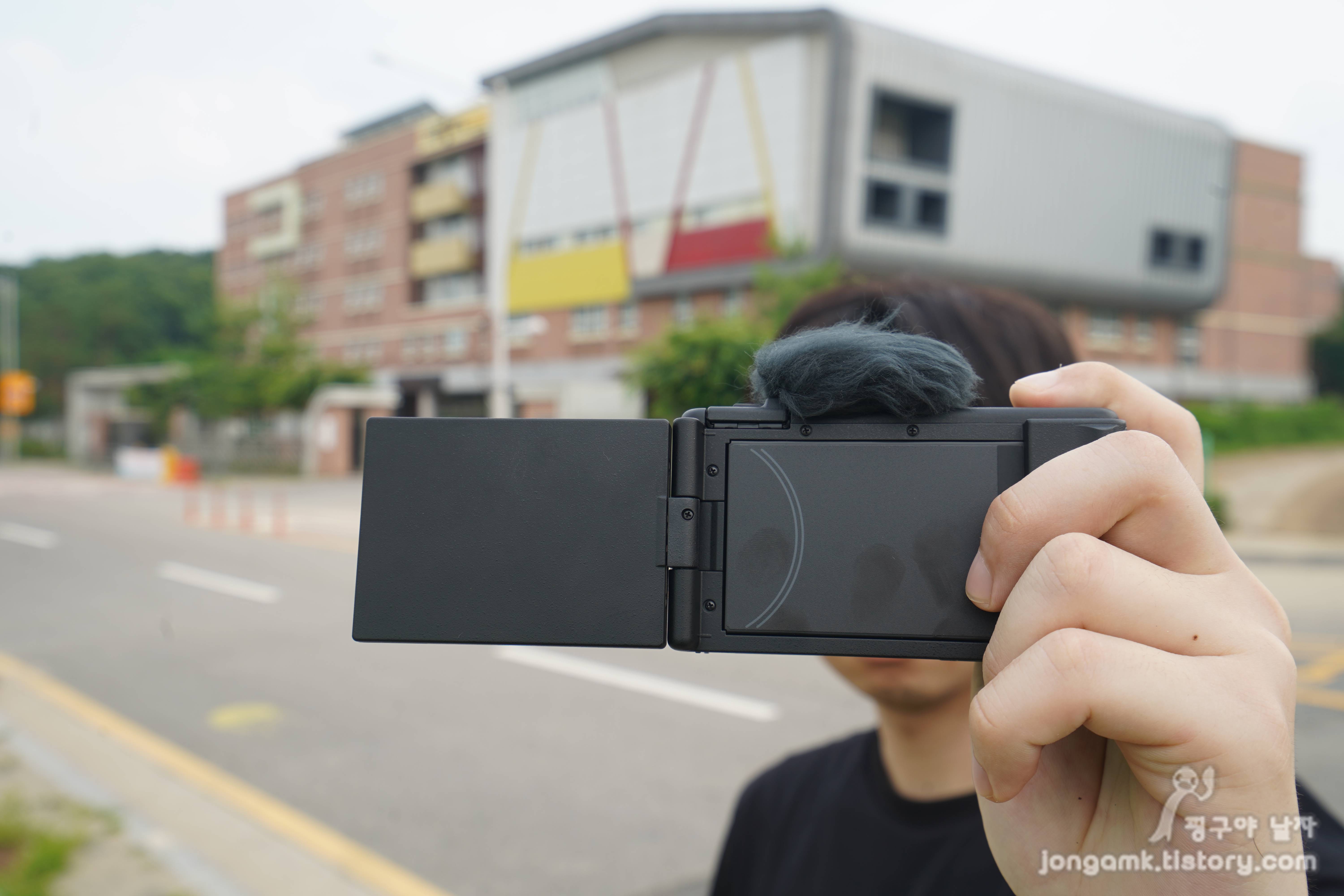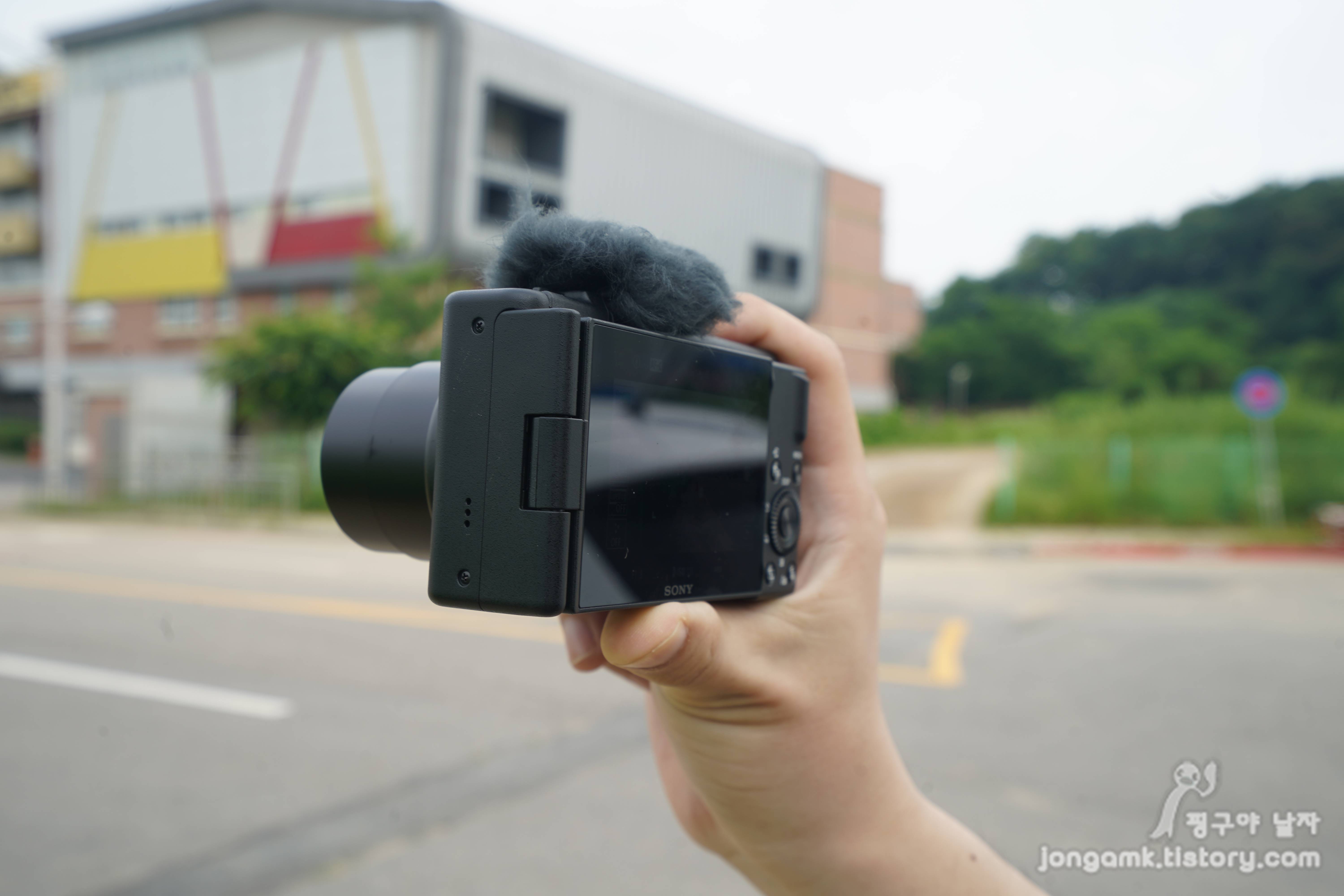 사용자가 촬영 환경에 따라 차이는 있겠지만 소니ZV-1M2는 콤팩트하고 가볍고 OIS기능을 제공해 슈팅그립이 없어도 흔들림이 편하게 촬영할 수 있었습니다. 사이즈는 105.5mm 세로 60mm 그리고 깊이는 43.5mm 입니다.